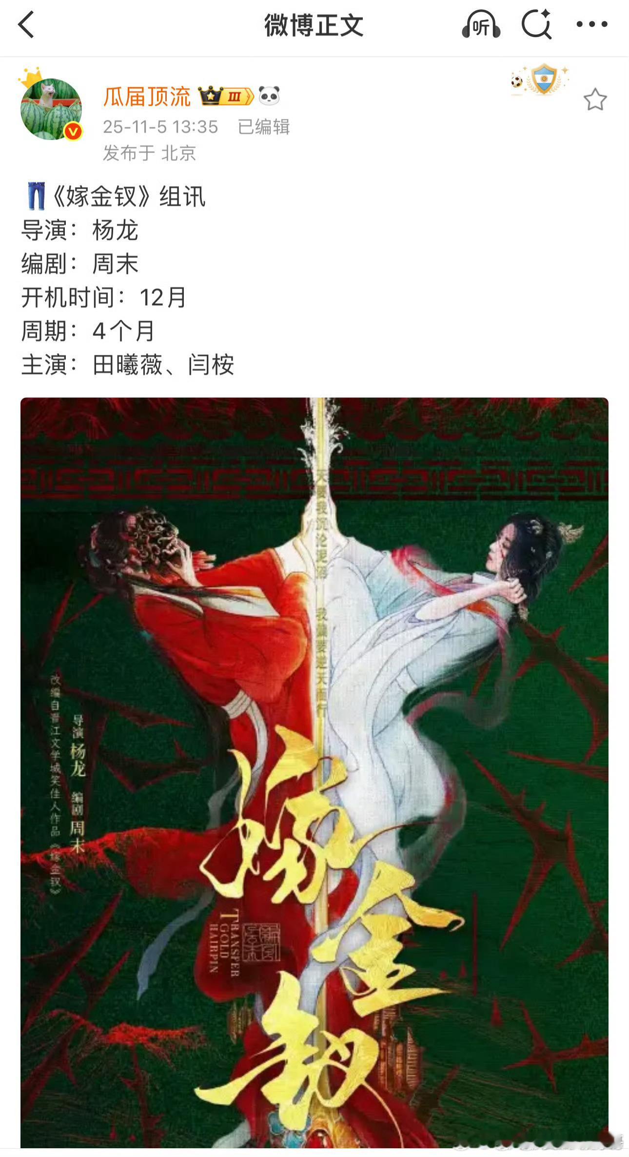 🍉《嫁金钗》主演:田曦薇、闫桉