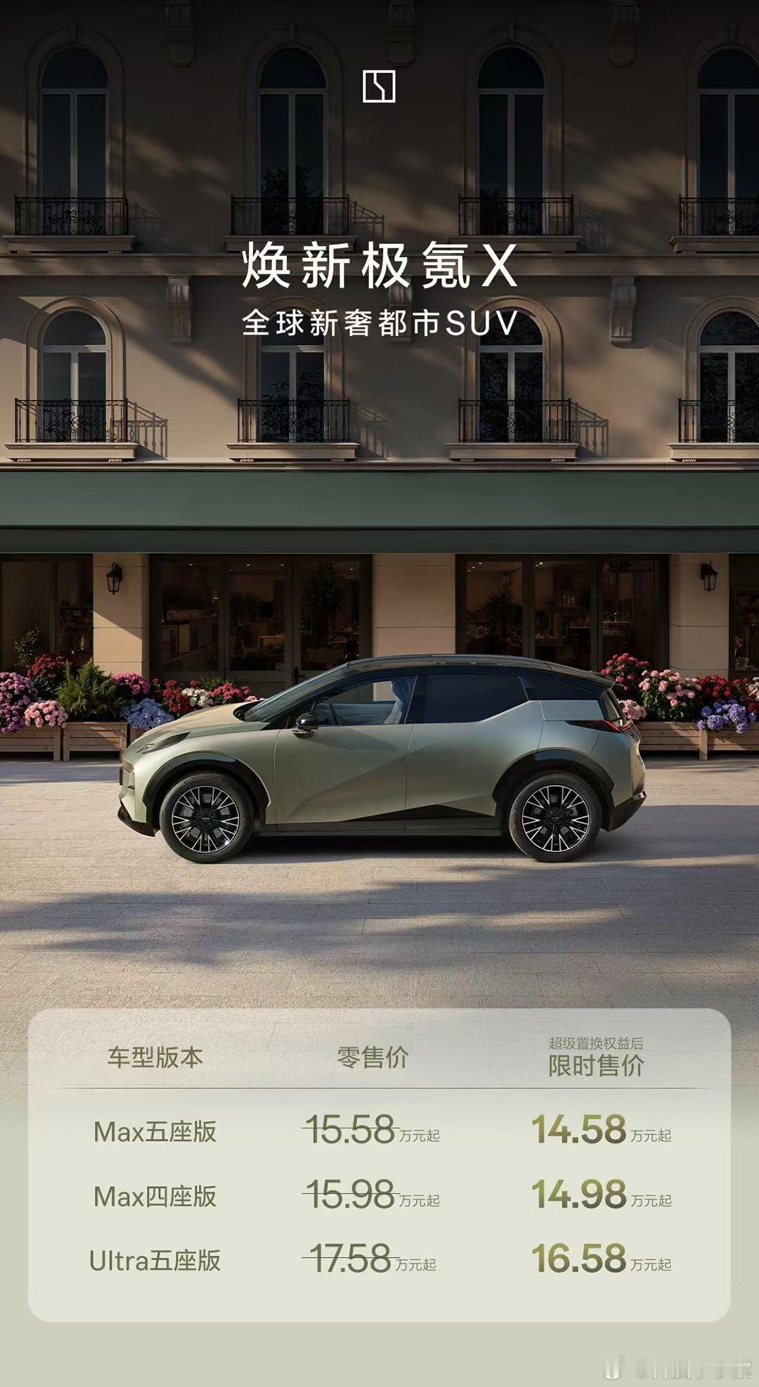 焕新极氪X上市 不仅够精致,我看这个性能表现真是太上头了!零百加速仅需3.69秒。61度电池可跑530公里,15分钟快充从10%到80%,日常通勤也没用一点压力。底盘调校非常的稳,让人安全感十足,安全性能也不用说了——顶压承重达9吨,有电池防撞结构护你周全没在怕的。