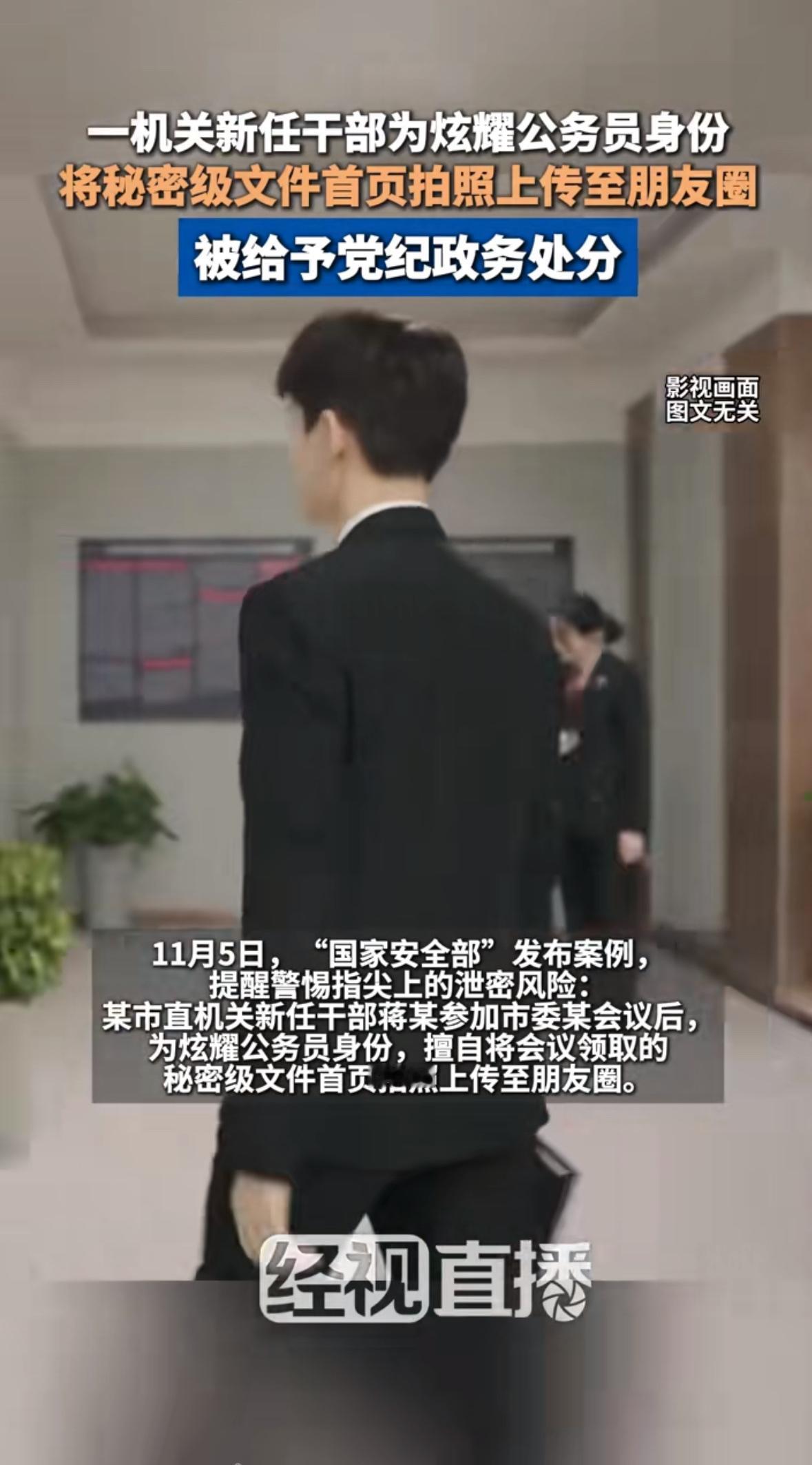 朋友圈里晒张美食照、发个旅行vlog,本是再普通不过的日常分享。可当某市直机关新任干部蒋某把秘密级文件首页拍进朋友圈时,这条动态瞬间成了刺向国家安全的利刃——10分钟后紧急删除的照片,早已被好友截图转发,在多个微信群形成传播链,最终让他背上党纪政务处分。 指尖泄密:一场“炫耀欲”引发的连锁灾难 2025年11月5日,国家安全部微信公众号披露的这起案例,撕开了数字化时代最危险的“安全漏洞”。蒋某参加市委会议后,为在朋友圈刷存在感,竟将刚领取的秘密级文件首页拍照上传。他或许觉得“只拍首页不碍事”,或许幻想“10分钟足够撤回”,却忘了互联网的“雁过留痕”特性——好友金某保存截图后发到微博,文件内容瞬间突破物理隔离,在虚拟空间肆意扩散。 这场闹剧并非孤例。某涉密单位办公室主任孙某用图文识别小程序转化机密文件,以为“删除本地文件就安全”,却不知第三方服务器已自动存储数据,最终被小程序公司员工倒卖;某县教体局借调人员胡某为求效率,直接将秘密文件拍照发至校长工作群,某校校长张某更是不加审核转发至教师群,导致文件在多个微信群“病毒式传播”。这些案例像多米诺骨牌般倒下,暴露出同一个致命问题:当“炫耀欲”“图省事”遇上数字化工具,泄密风险就会像野火般蔓延。 虚荣心作祟:年轻干部的“保密课”为何总不及格? 蒋某们的故事,折射出年轻干部群体中普遍存在的“认知错位”。他们或许能熟练背诵保密条例,却低估了社交媒体的传播威力;或许清楚涉密文件的重要性,却在虚荣心驱使下铤而走险。某机场调度员韩某为在同学群“显摆”,将3份涉密文件拍照发送,导致文件被传至短视频平台;某基层干部张某更是在家中向亲属透露文件内容,被境外机构指使的李某用手机偷拍后发送至境外——这些案例中的主角,无一不是被“炫耀欲”“表现欲”蒙蔽了双眼。 更值得警惕的是技术工具带来的“虚假安全感”。孙某们以为“用小程序转化文件更高效”,却不知第三方服务器正在默默存储数据;胡某们觉得“拍照发群能快速传达”,却忽略了微信群的开放特性。当数字化工具成为泄密的“帮凶”,当“技术中立”沦为违规的“遮羞布”,年轻干部的保密防线便在虚荣心与技术漏洞的双重夹击下轰然崩塌。 守密如守命:每个“第一次”都是生死考验 “涉密不上网,上网不涉密”——这句口号,在蒋某们的案例中显得格外刺眼。国家安全部披露的案例里,有人因欠下赌债主动向境外机构出卖涉密文件,有人因缺乏敬畏之心将敏感信息当谈资,但更多人像蒋某一样,因“无心之失”酿成大祸。这些教训告诉我们:保密不是“选择题”,而是“必答题”;不是“软约束”,而是“硬红线”。 对于年轻干部而言,守密如守命。第一次违规拍照、第一次图省事用小程序转化文件、第一次在社交媒体炫耀涉密内容——这些“第一次”就像潘多拉魔盒,一旦打开,便可能引发连锁灾难。唯有从入职第一天就绷紧保密之弦,将“涉密信息绝不外传”刻进骨子里,才能在数字化浪潮中守住国家安全的底线。 你的朋友圈安全吗?来评论区聊聊 当我们在键盘前指责蒋某“虚荣”时,或许也该反思:自己的朋友圈是否也曾“差点泄密”?是否转发过未经核实的“内部消息”?是否在群聊中讨论过工作敏感内容?国家安全无小事,指尖泄密勿大意。你的每一条留言,都可能成为照亮他人保密盲区的火把。 现在,轮到你说说了:如果遇到同事在朋友圈晒涉密文件,你会选择提醒还是举报?你认为年轻干部该如何筑牢保密防线?在评论区留下你的故事,或许下一个守护国家安全的“保密卫士”,就是你。 来源:经视直播