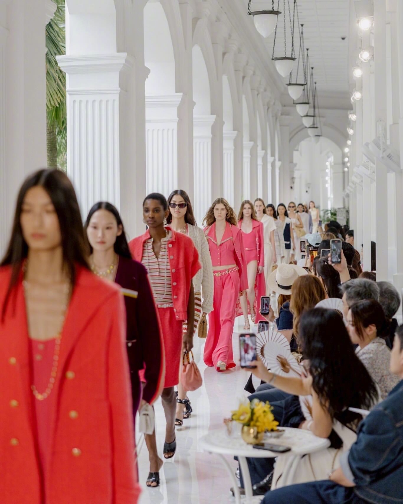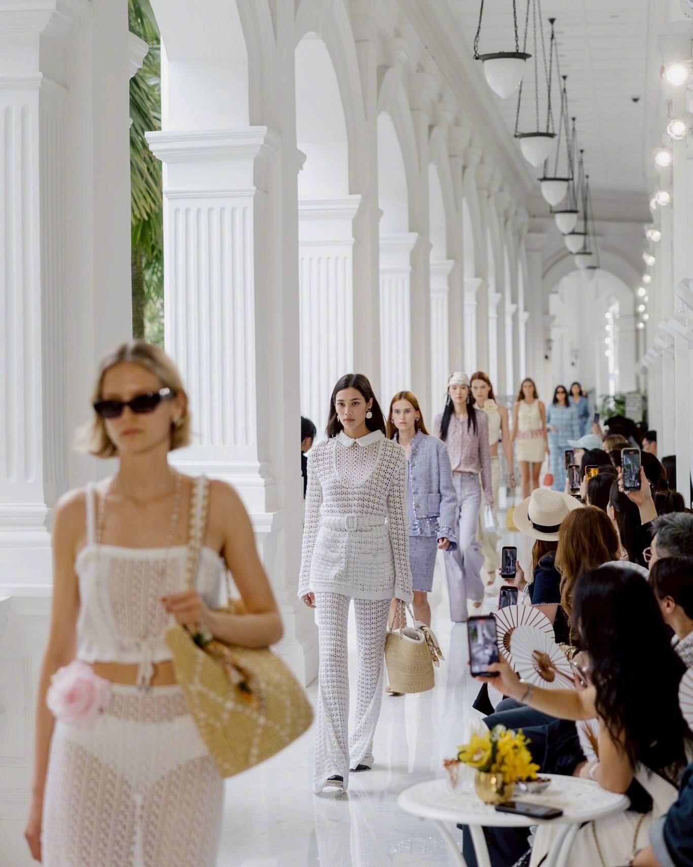 CHANEL 2026 早春度假系列新加坡发布秀———今年 4 月,该系列在意大利科莫湖畔的 Villa d’Este发布。昨天,这场充满度假气息与优雅魅力的时装盛宴再次在新加坡莱佛士酒店呈现。本系列以“惬意假期的魅力”为灵感,将轻松自在的氛围与好莱坞式的优雅风格完美融合,呈现出一场热带风情与精致时尚交织的视觉盛宴。🍃🌸