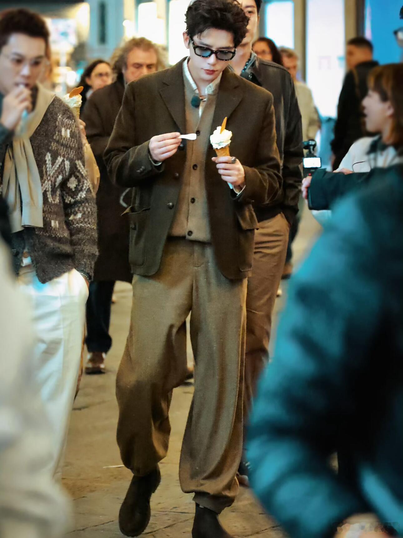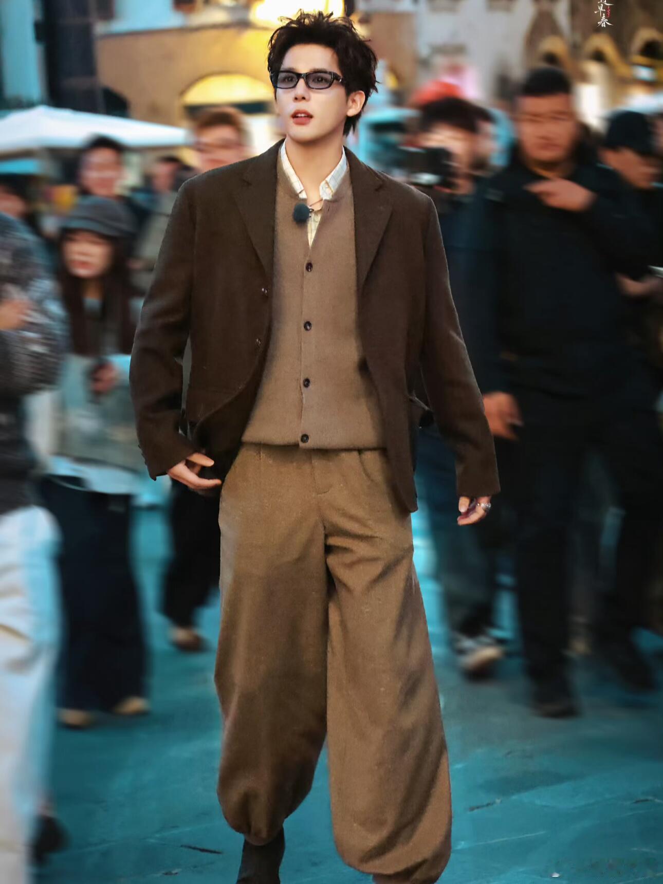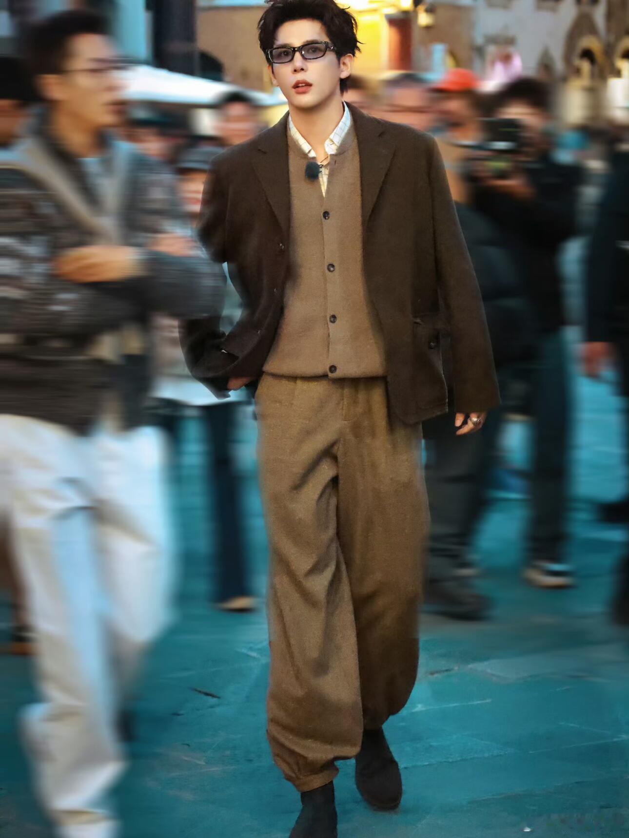 王安宇这组大片质感绝了,电影感拉满!羊毛外套配束脚裤,贵气天成,同色系穿搭直接封
