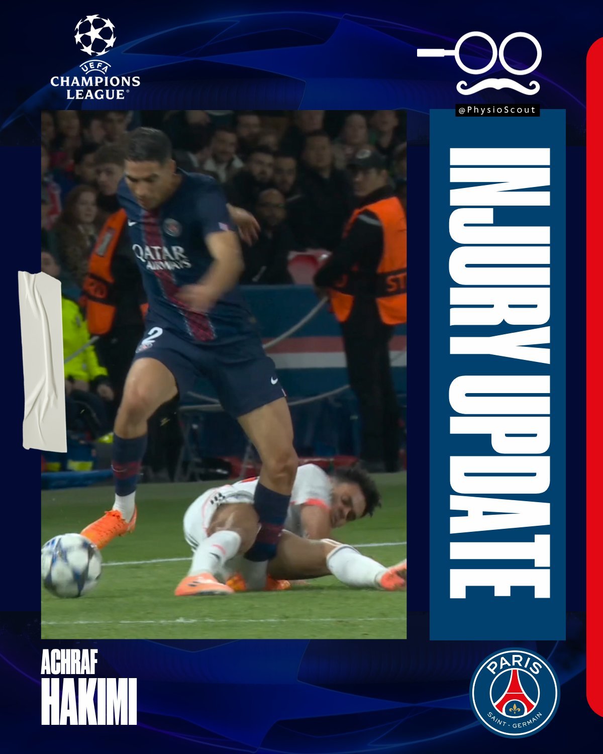 PSFI(球员伤病分析大神)关于巴黎圣日耳曼球员阿什拉夫伤情分析: