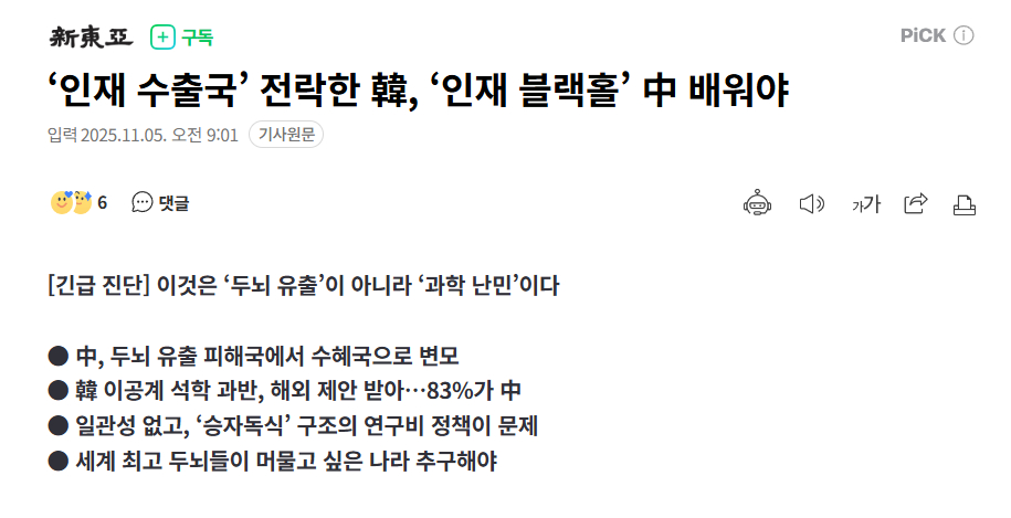韩国理工科顶尖学者过半获海外邀约…83%来自中国