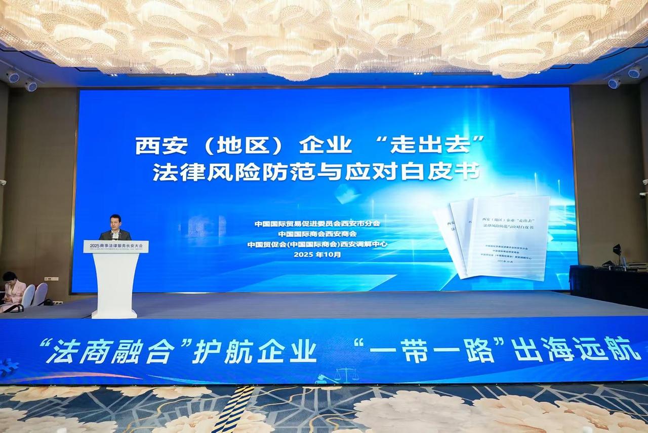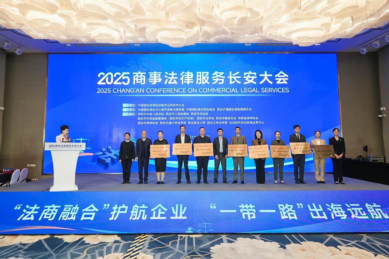 作为中国国际贸易促进会(国际商事调解中心)西安调解中心调解员,参加2025商事法律服务长安大会,并受牌“知识产权维权服务站”