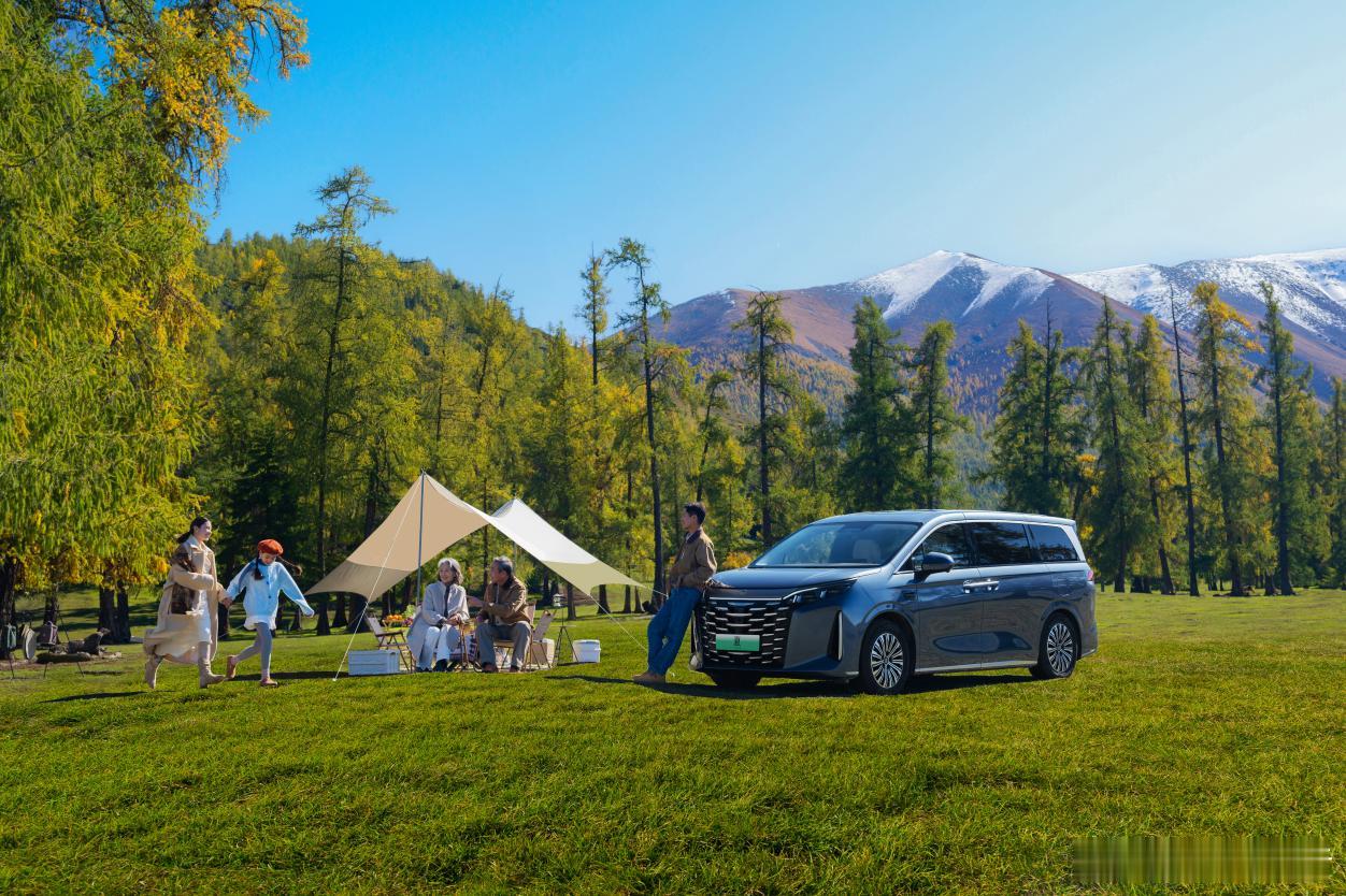 颜值上,新车新增墨竹青、鎏光紫金双拼、月影黑金双拼3色,搭配原有4款外观与2款内饰,7种选择适配不同家庭风格,成为出行“最美背景色”。空间更不必说,超5米车长+3米多轴距打造超大座舱,副驾可一键变躺椅,第二排带按摩与腿托,第三排能翻转隐藏,腾出2036L后备箱装下全家爱好。