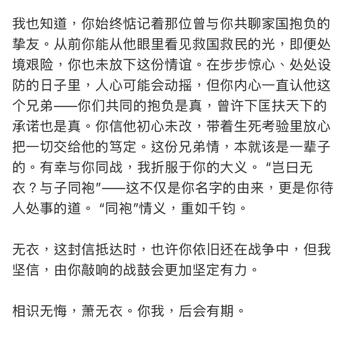 天哪我完全被侯明昊为萧无衣写的长文戳到💧好真诚好爱角色的一位!字字句句里裹藏着的是对萧无衣的欣赏和理解。