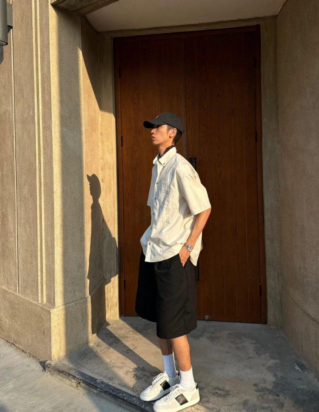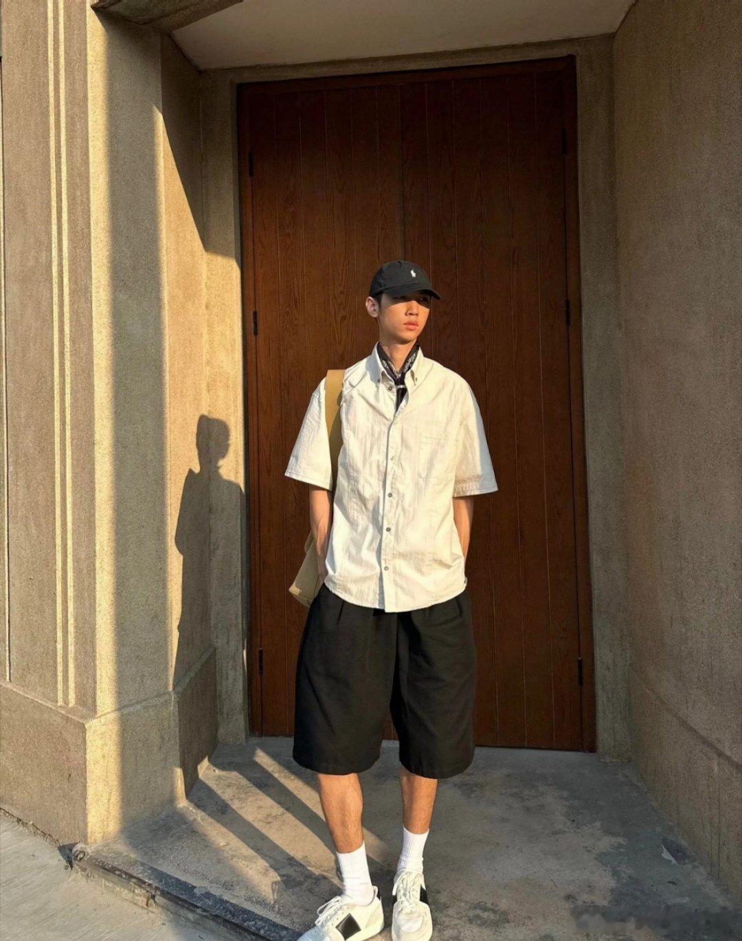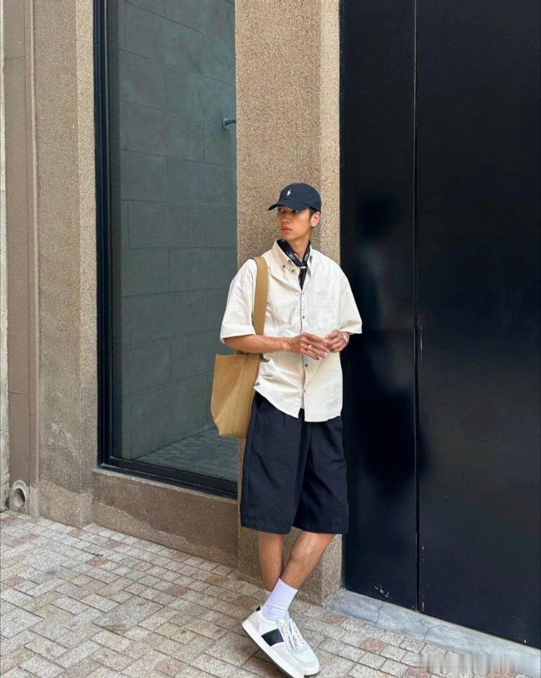 男大生的夏日懒人穿搭公式来啦!✨周一用 oversize 灰 T 配工装短裤,侧