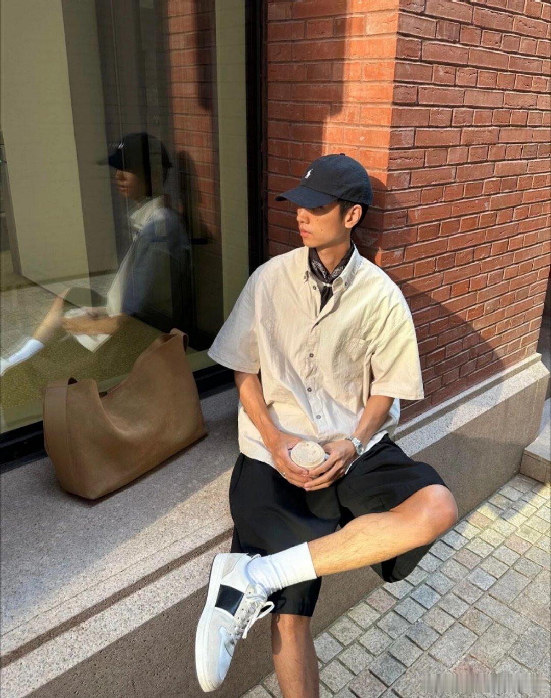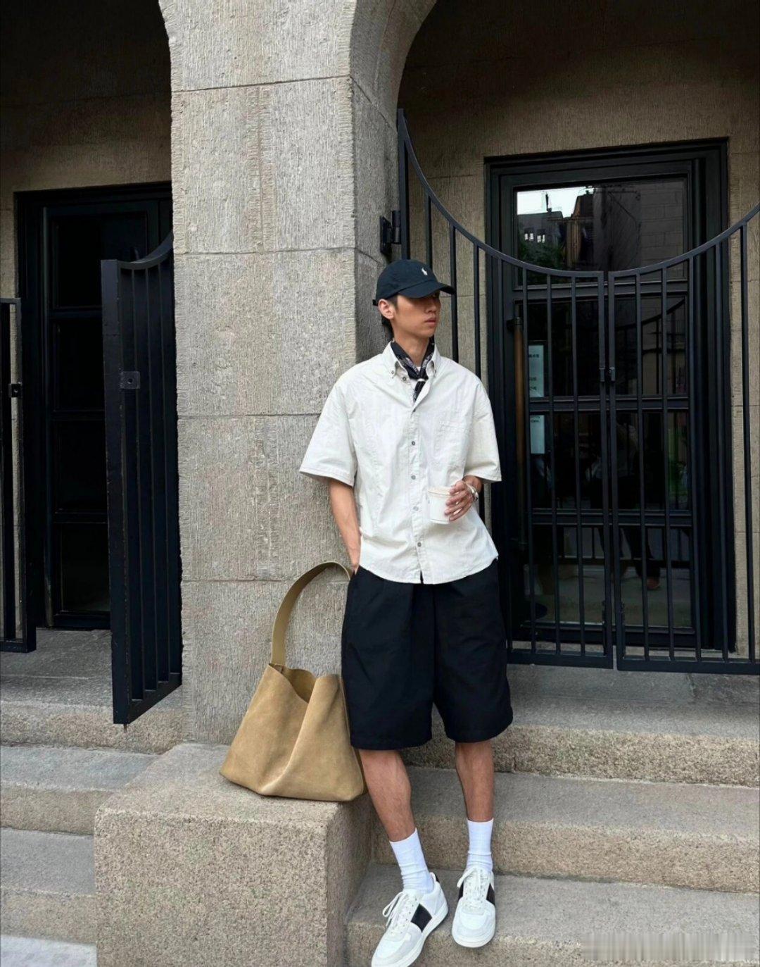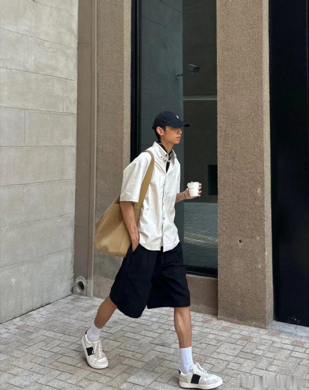 男大生的夏日懒人穿搭公式来啦!✨周一用 oversize 灰 T 配工装短裤,侧