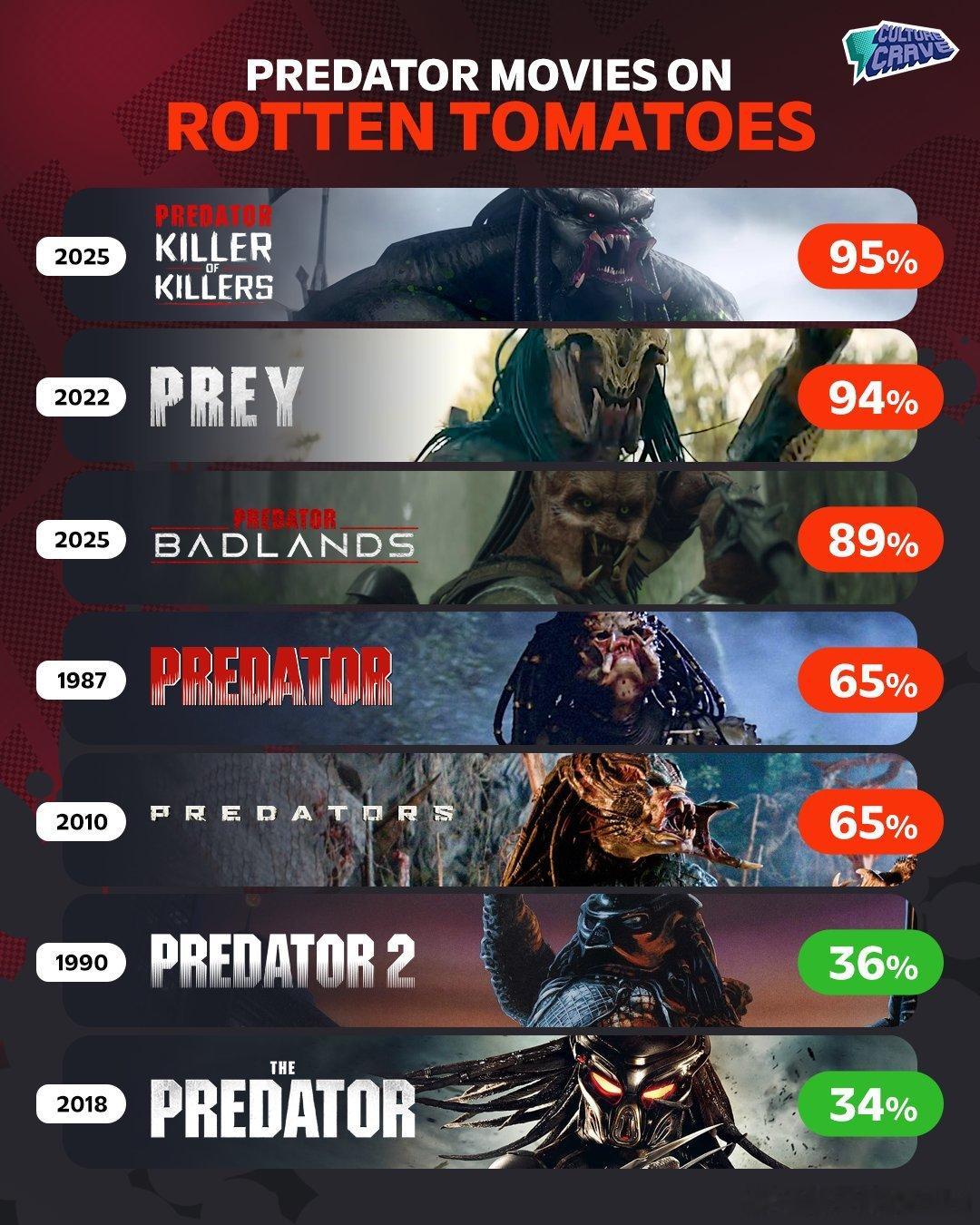 本周五即将在内地上映的《铁血战士:杀戮之地》烂番茄开分89%,排名前三的电影均为丹·特拉亨伯格导演