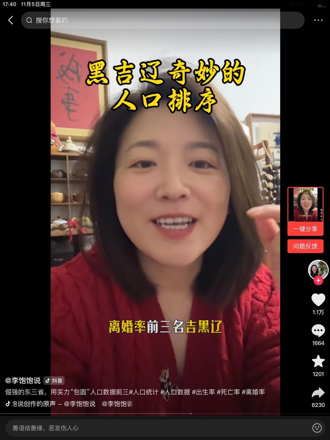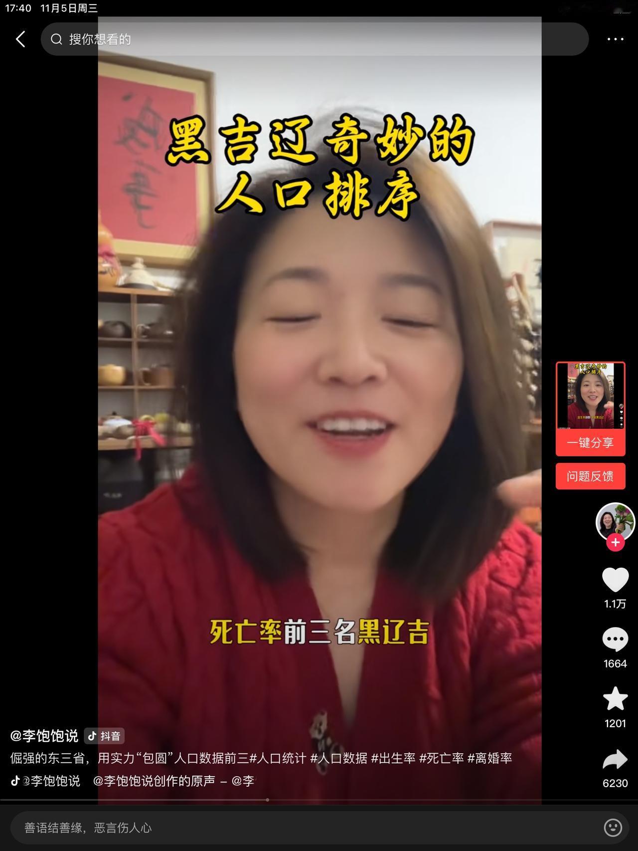 太好玩了,李饱饱说哈,出生率倒前三黑吉辽,离婚率前三吉辽黑,死亡率前三名黑辽吉。笑坏我了,你说辽宁以后就别争第一了,哪个也没排上号啊!你们说的都对,东北人,到哪儿都能遇见,就是黑吉辽少。 东北人实在,人也不笨,好交朋友,到哪儿都能落地生根,发芽结果。以前闯关东,我姨奶奶有两个都在黑龙江结婚生子,有一个多年以前回来过,带的哈尔滨红肠。我爸说那是姨奶奶最后一次回来了。后来就没后来了。按年纪,也该不在了。 两个姨奶奶生了七个孩子,都比我爸年纪小。那会儿我孩子想去哈工程,还说可以去看看我那些叔叔姑姑,老家来人了,他们一定很高兴。后来去了吉林,没去成。 也不知叔叔姑姑们的孩子都去哪里上大学了,可能不太会出省。也不一定哈。也可能想找个不冷的地方呆着,过几年悠哉的大学生活。没有联系,但想起来,心里会暖暖的。