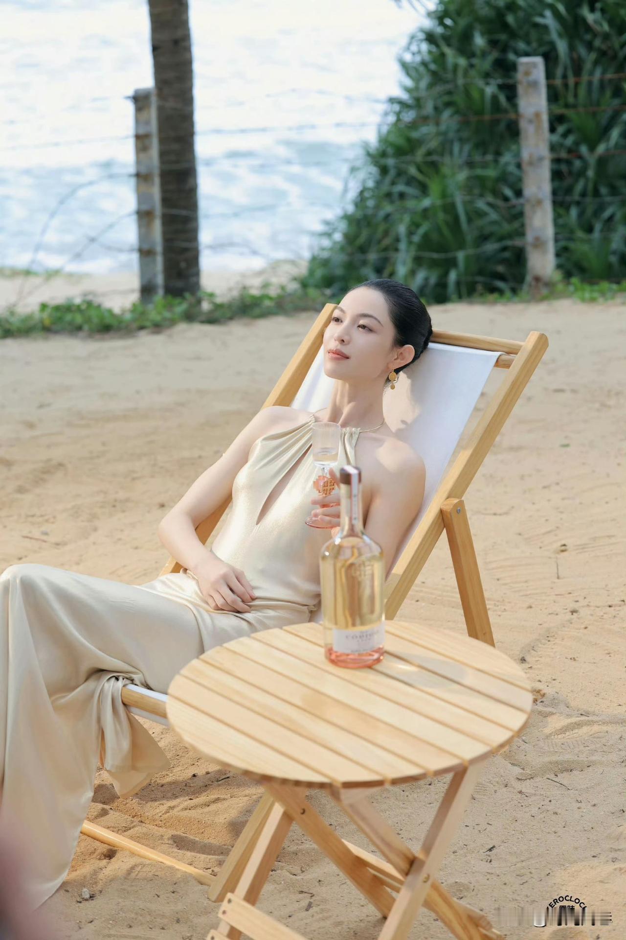 金黄松软的沙滩上,钟楚曦坐在精致舒适的木制躺椅上。静静享受着微微的海风和灿烂温暖的阳光。满满的休闲松弛感!
