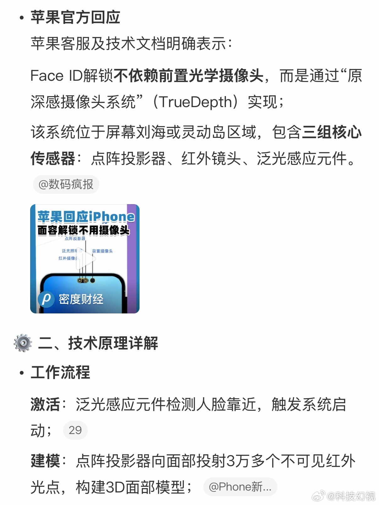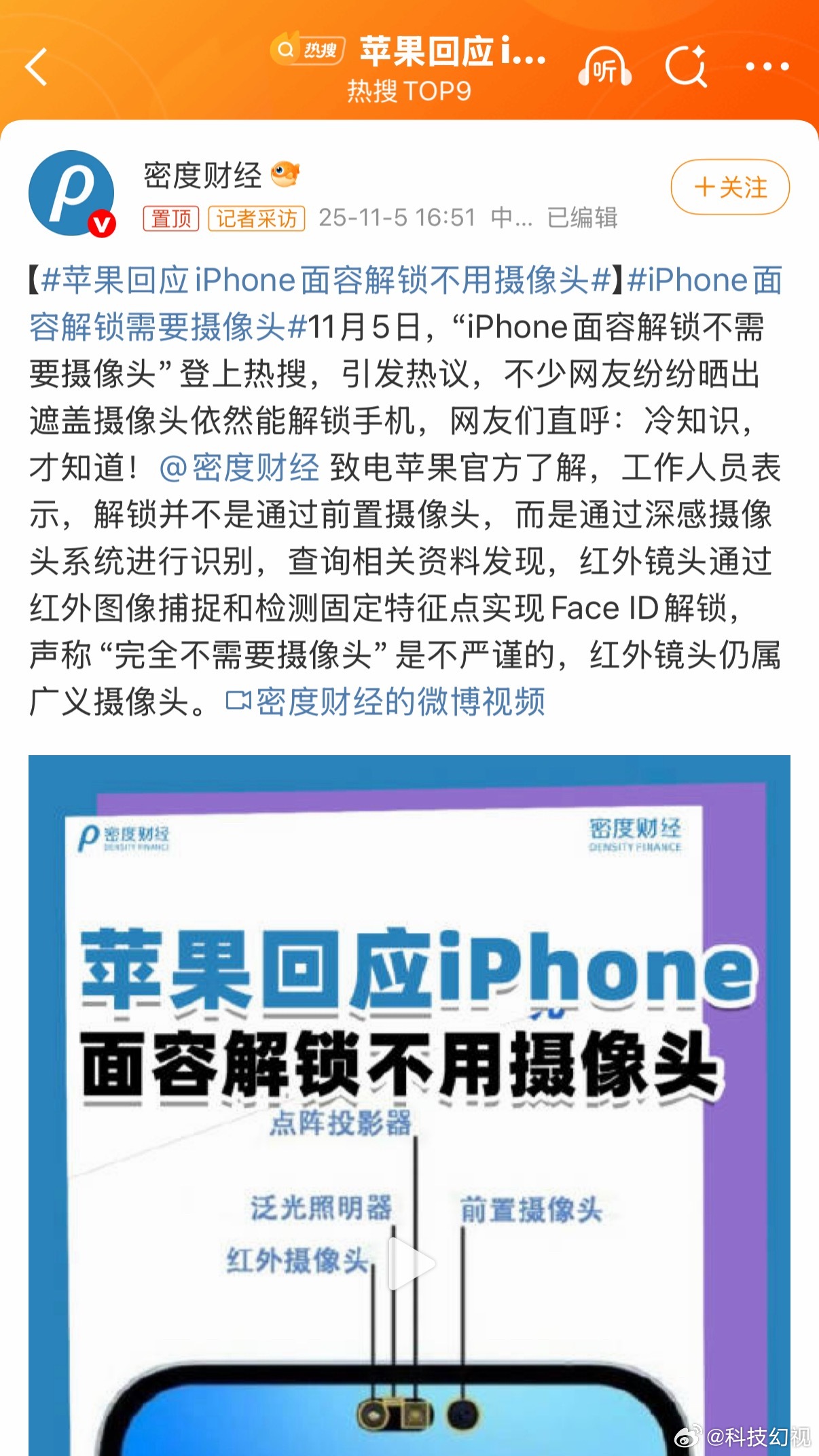 苹果回应iPhone面容解锁不用摄像头“网友们直呼冷知识”……把网友们都当傻子?[捂嘴哭][捂嘴哭]
