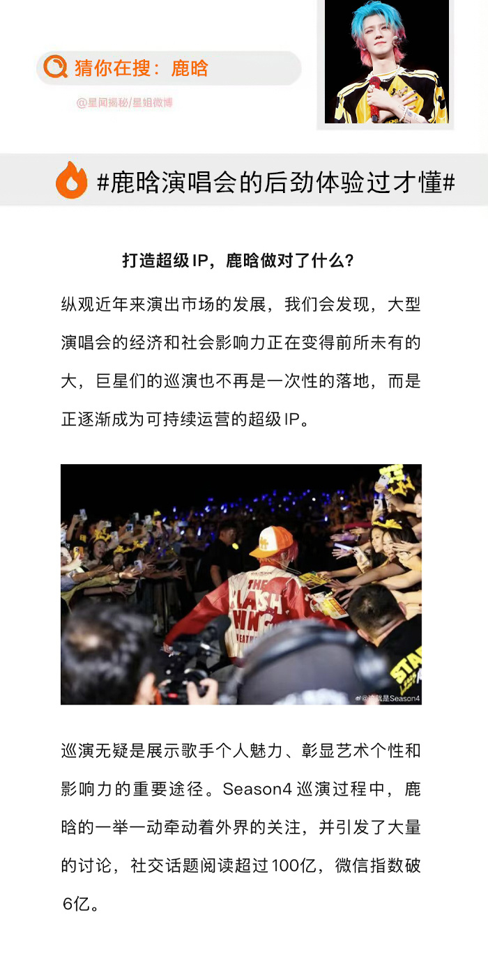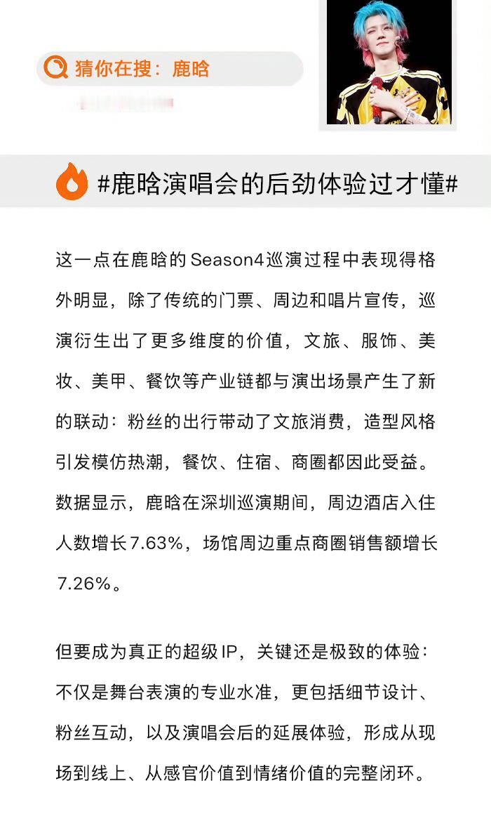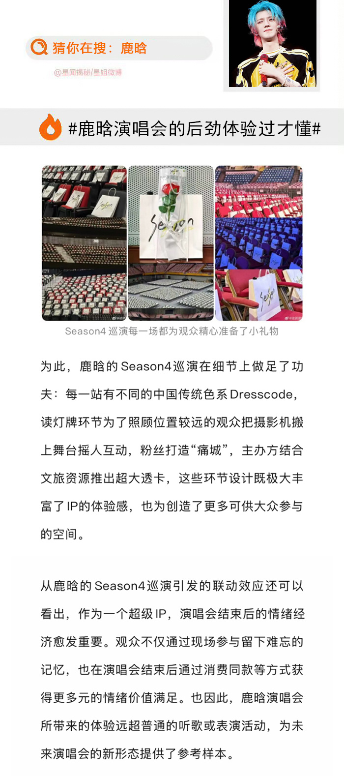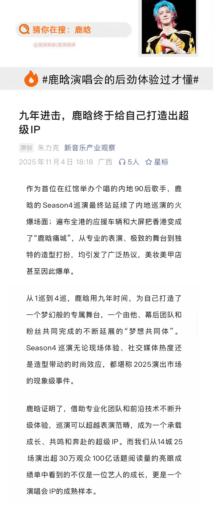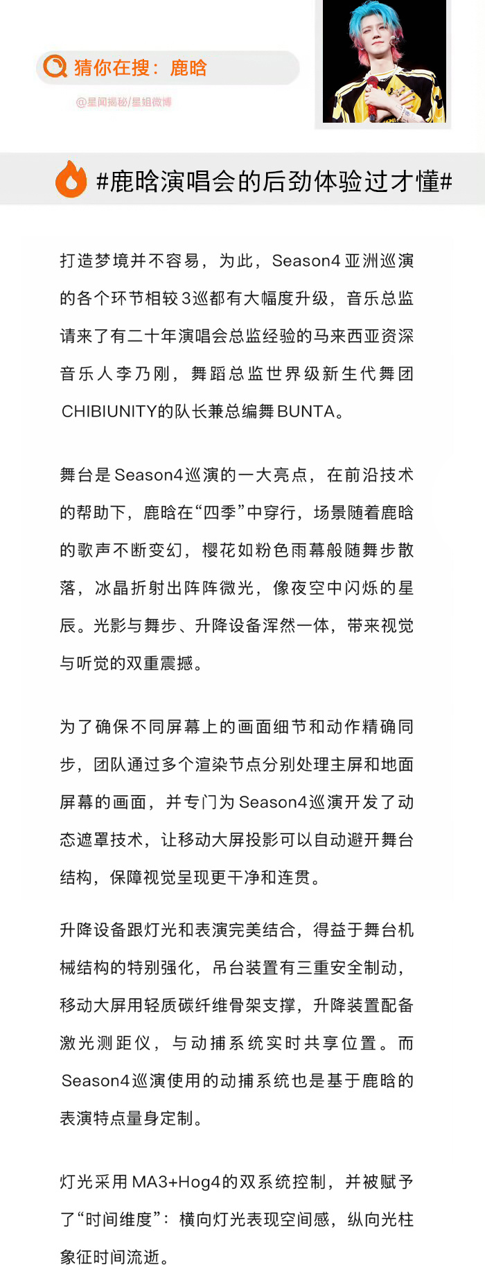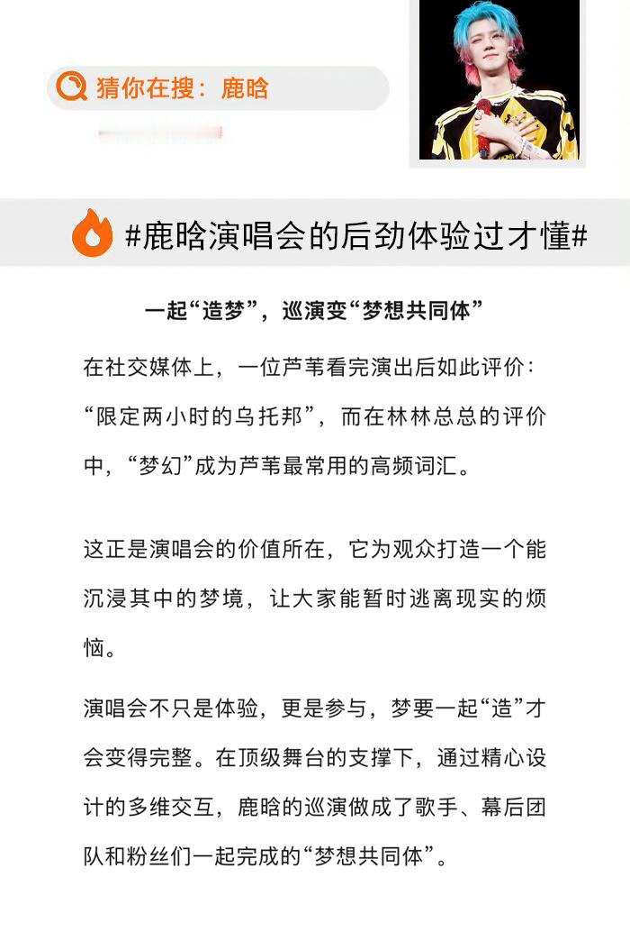 鹿晗演唱会的后劲体验过才懂 在快速迭代的娱乐圈,鹿晗用九年时间潜心打磨一件事,用现场实力和诚意赢得市场与口碑的双重认可,这才是真正的长期主义!鹿晗演唱会有没有平替