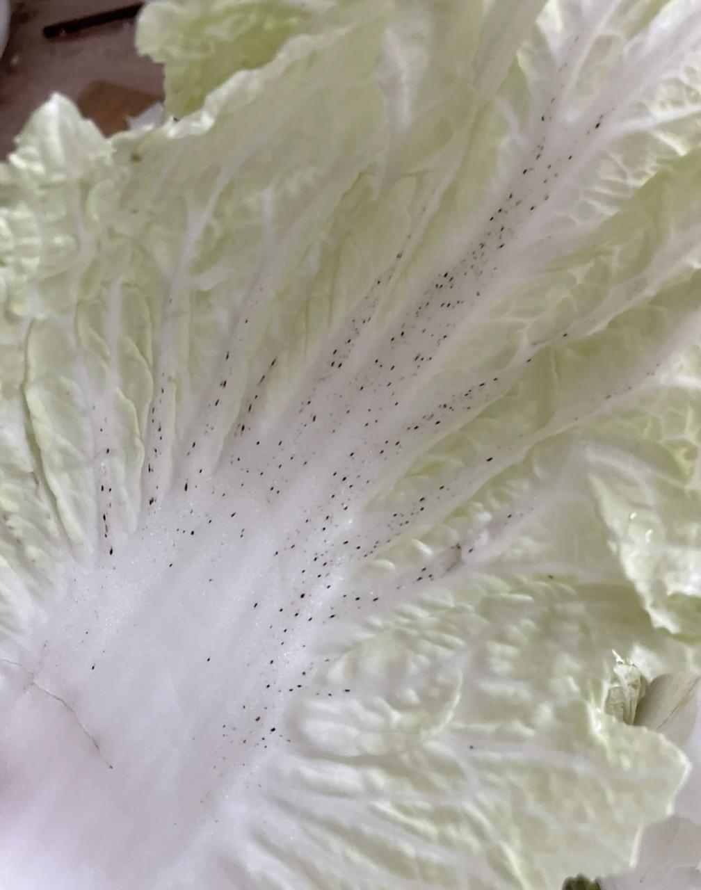 这是什么情况?有知道的吗?今天买了颗大白菜回家,想着炖个热乎乎的白菜豆腐汤,结果一扒皮直接傻眼了——叶子上全是密密麻麻的黑斑[what] 我跟开盲盒似的一层接一层扒,都快扒到菜芯了,黑点还没消失!这是长霉了?还是被虫子嚯嚯了?扔了吧,怪可惜;吃了吧,还怕闹肚子! 你们平时买白菜遇到过这种情况吗?是直接扔了还是切了继续吃?买菜避坑指南