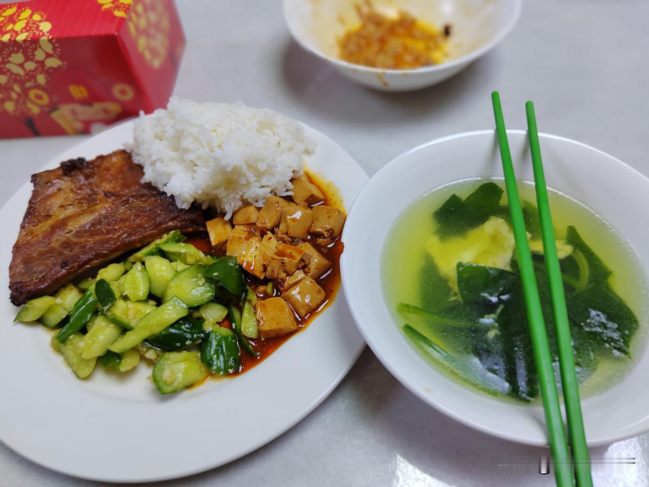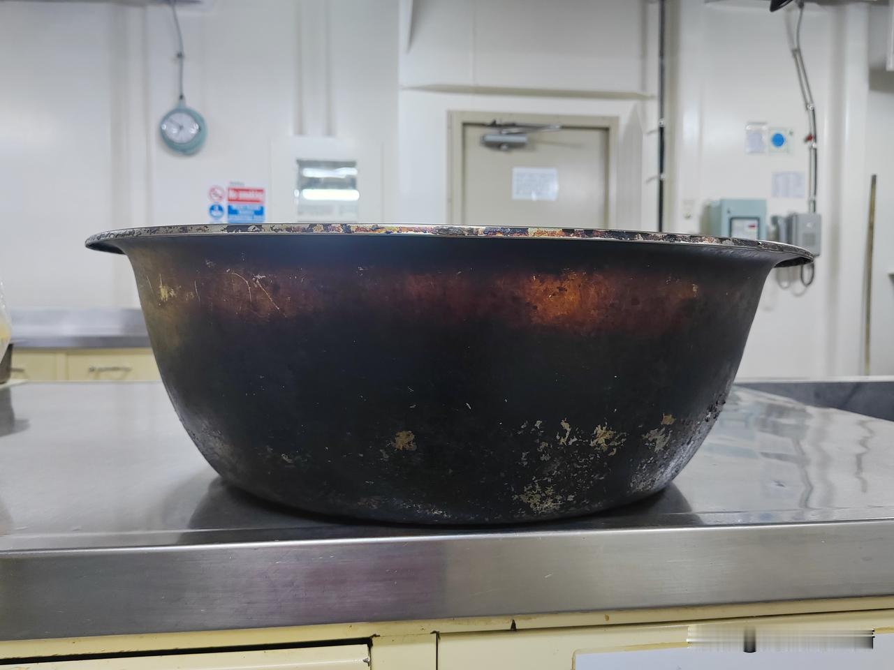菲律宾船员真的是太会节约了,厨房的厨具都用到这个地步了,还一直用着,也不舍得扔掉,我虽然没有钱,但是用到这种情况了,我肯定会不用了,扔掉买新的吧! 11月的1号我刚上船,接的是菲律宾大厨的班,这几天一直挺糟心的,糟心的不是库房里的各种调料,各种酱料,各种瓶瓶罐罐,而是厨房的厨具清洁不干净啊,去重油的清洁剂都用上了,还是不管用,怎么办啊! 现在我每天除了做好一日三餐外,有点空闲时间,就赶紧搞卫生,实在是看不下去了,听船长说,以前厨房的卫生都是船长安排的实习生搞的,菲律宾大厨可能是年龄大了,体力跟不上了,现在合同还没到期,就报休假回家了。 我们船在日本的第二个卸货港,马上就要卸完货了,预计明天下午的6.7点钟开航,去东澳装煤炭。 今天的晚餐:烤猪小排,凉拌黄瓜,麻辣豆腐和菠菜蛋花汤!