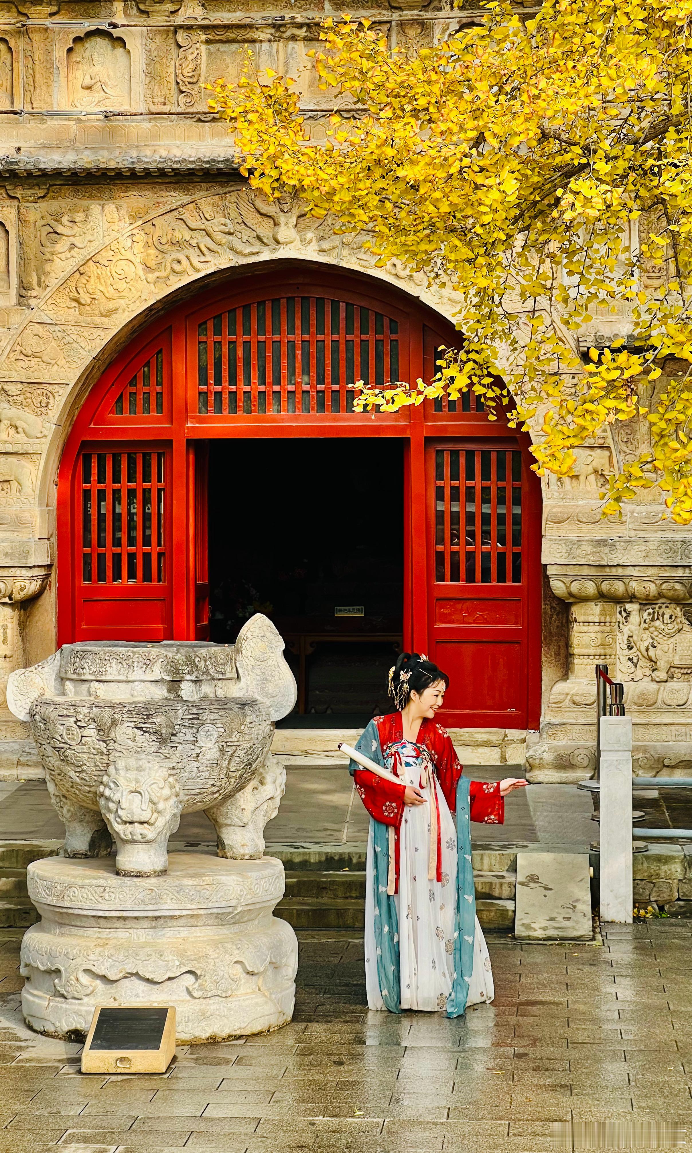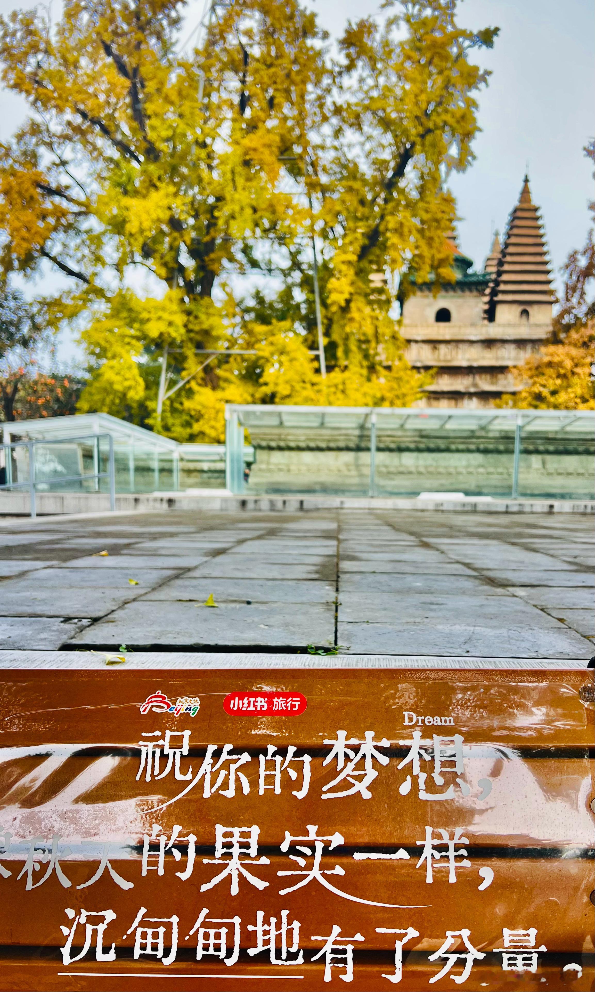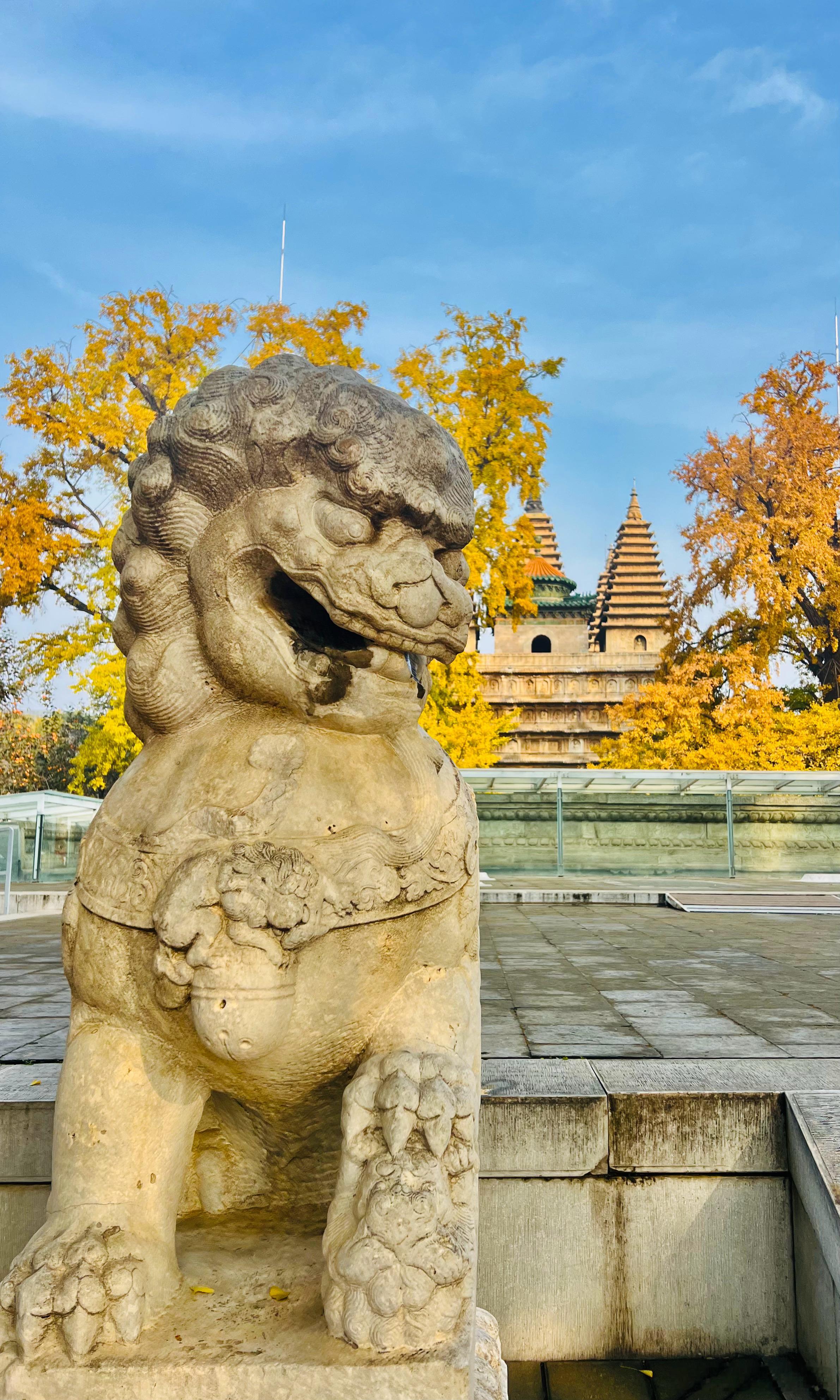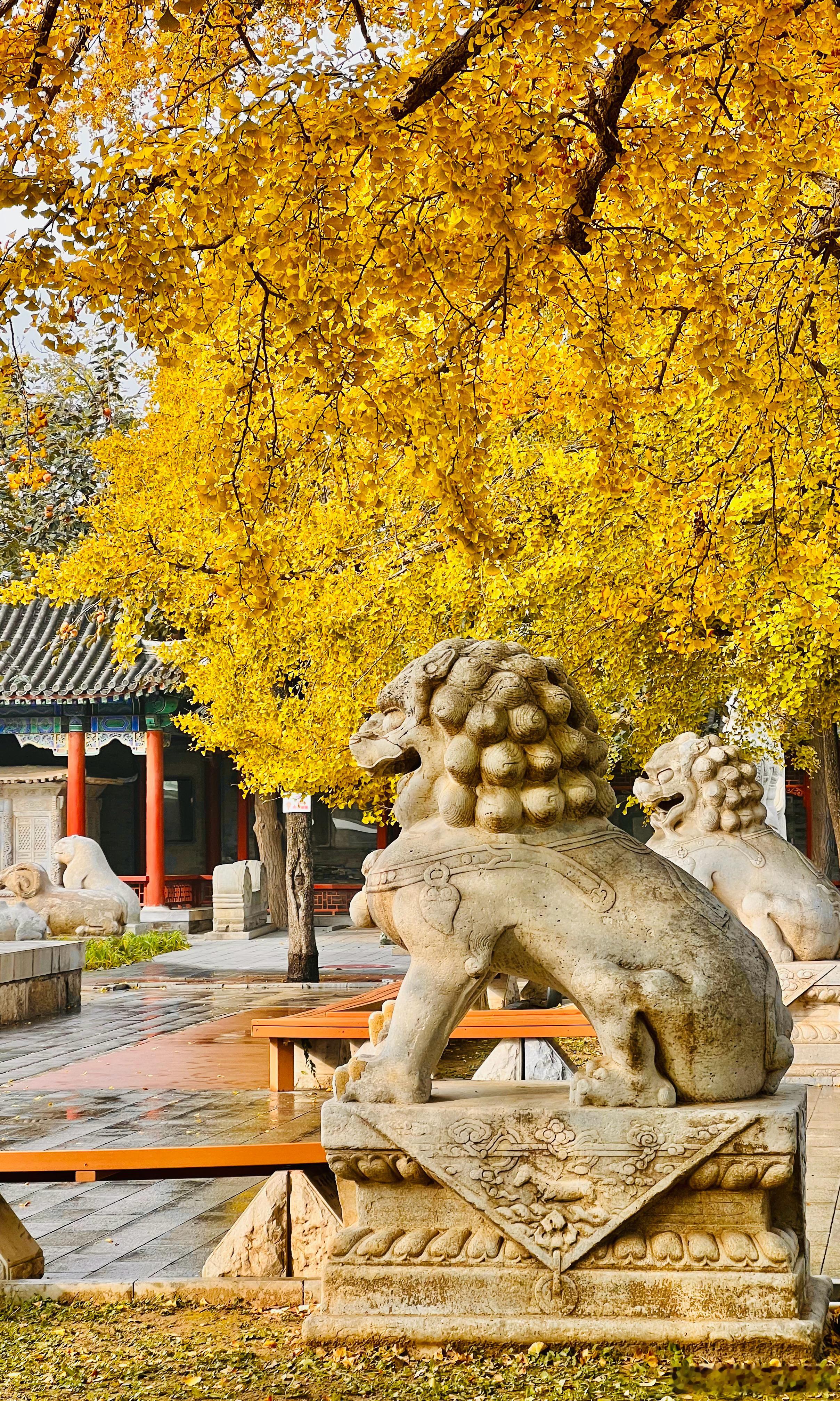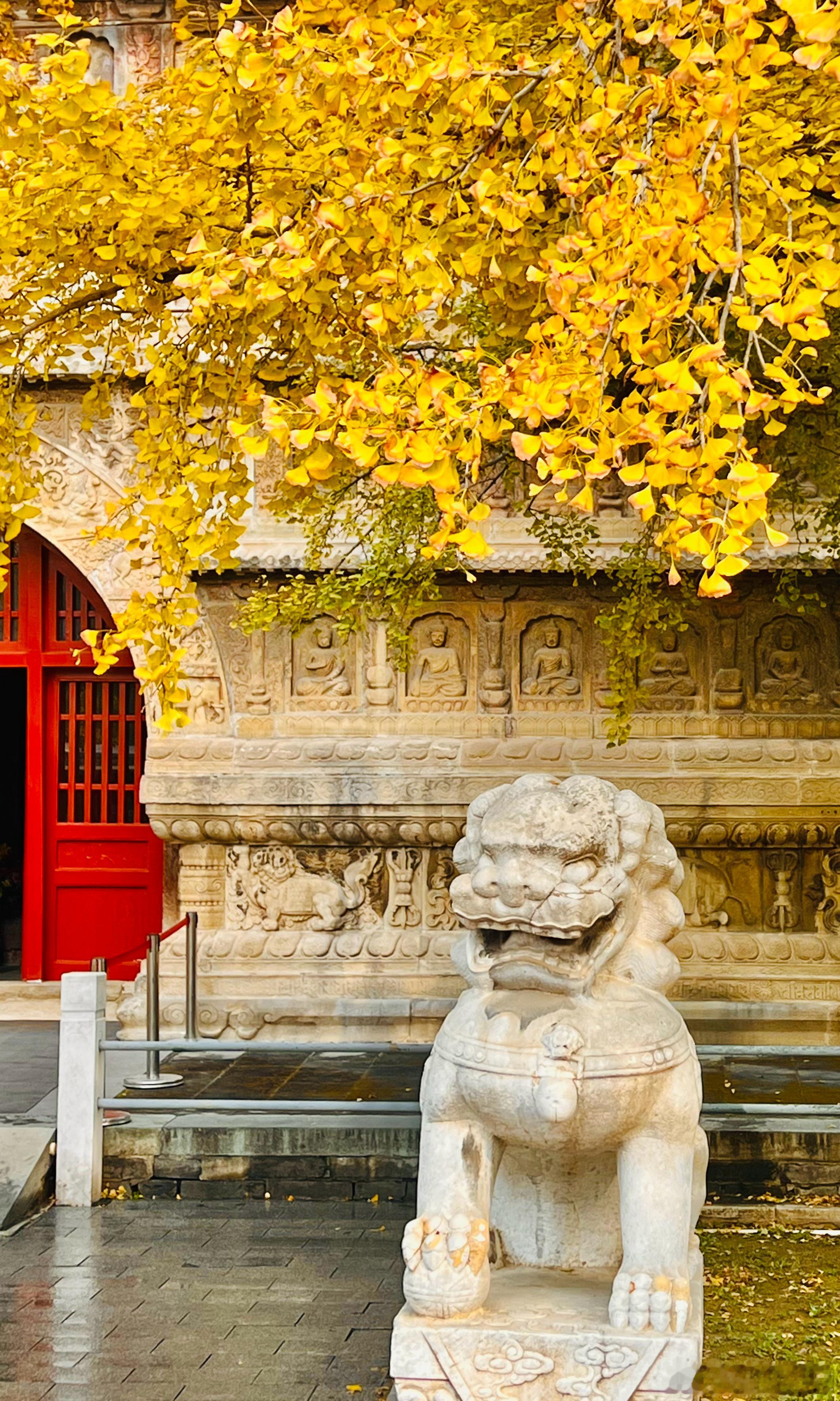 【五塔寺】古寺塔如笔,银杏画秋章。客来阶下立,仰见柿子黄。摄影