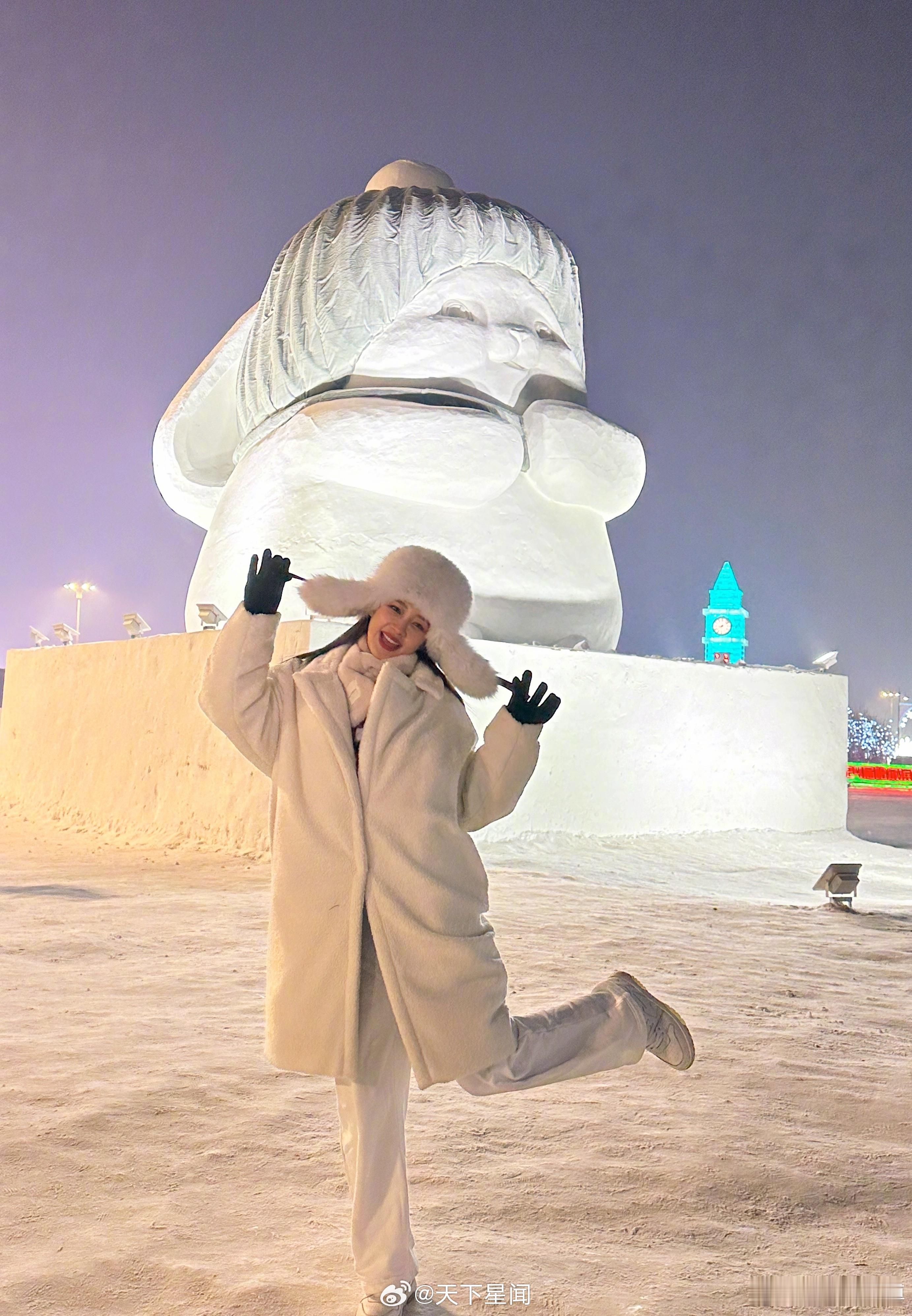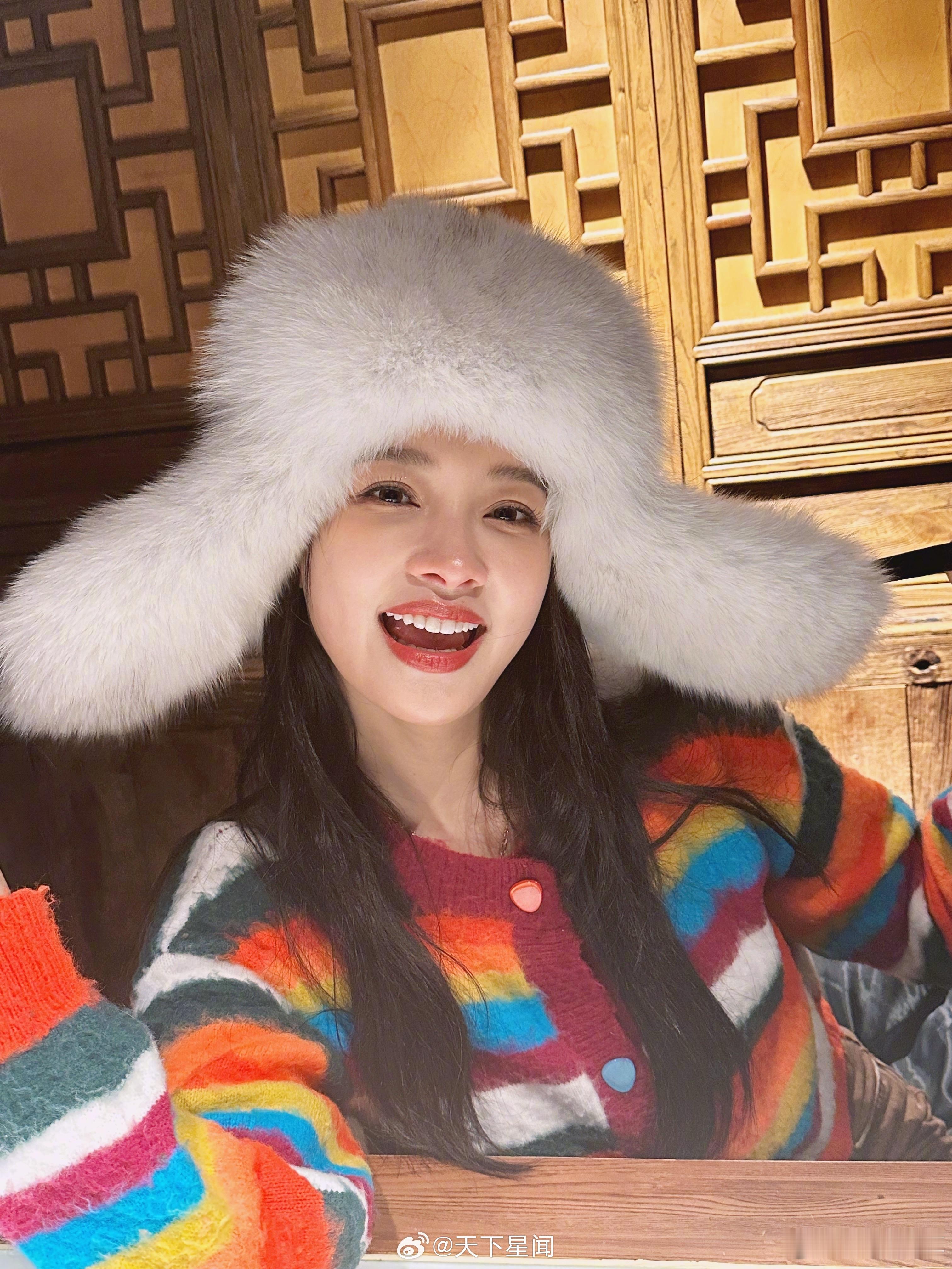 张天爱跟素人合影,胯真的好宽,大宅院似的