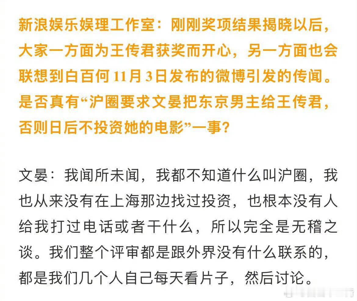 桂纶镁回应白百何落选 文晏正面回应:1、不认识白百何;2、奖从来不是撕出来的,奖项不是一个人或者一个公司能只手遮天的;3、不知道什么叫沪圈,也没人跟她打电话