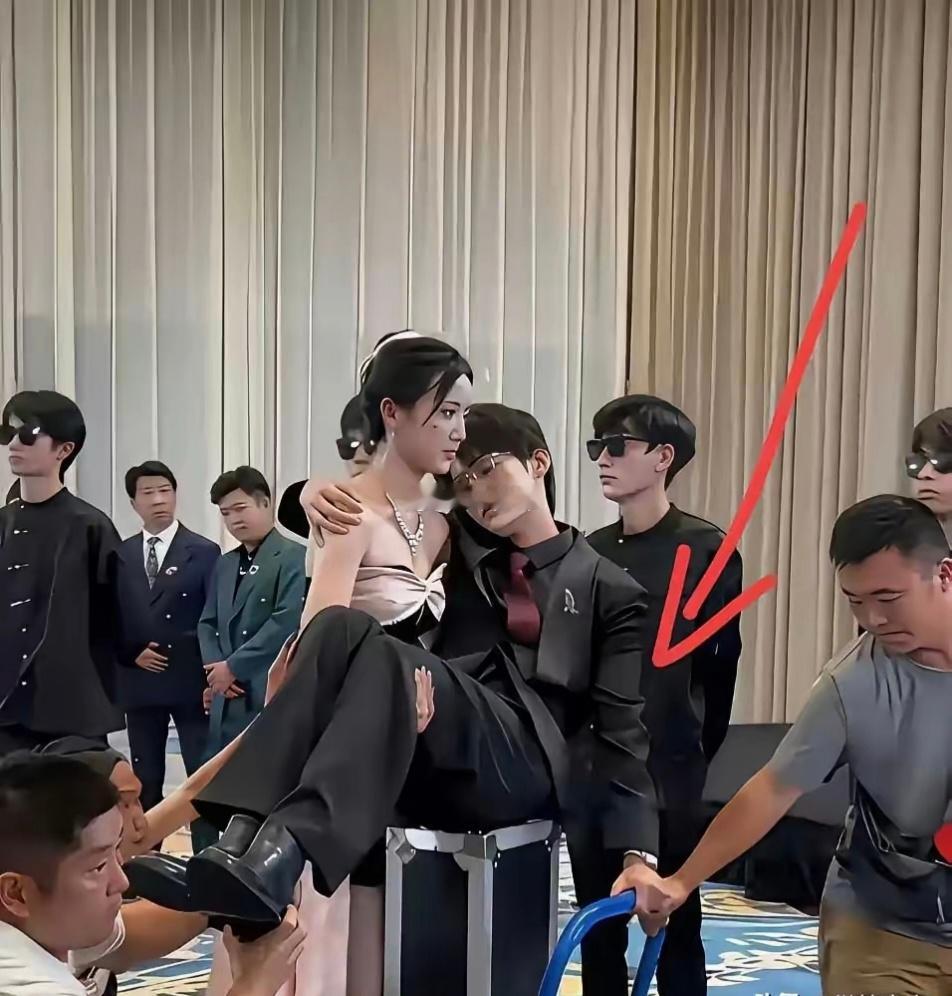 张天爱跟素人合影,胯真的好宽,大宅院似的