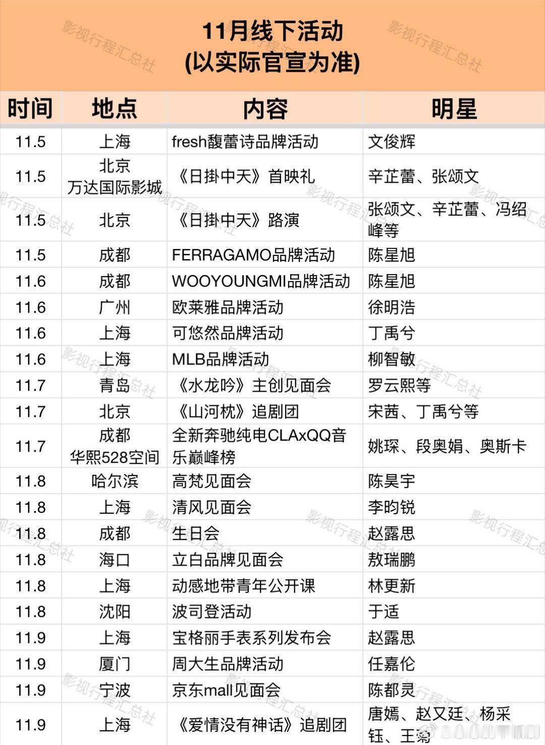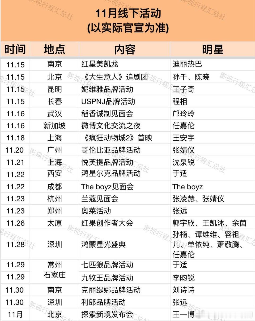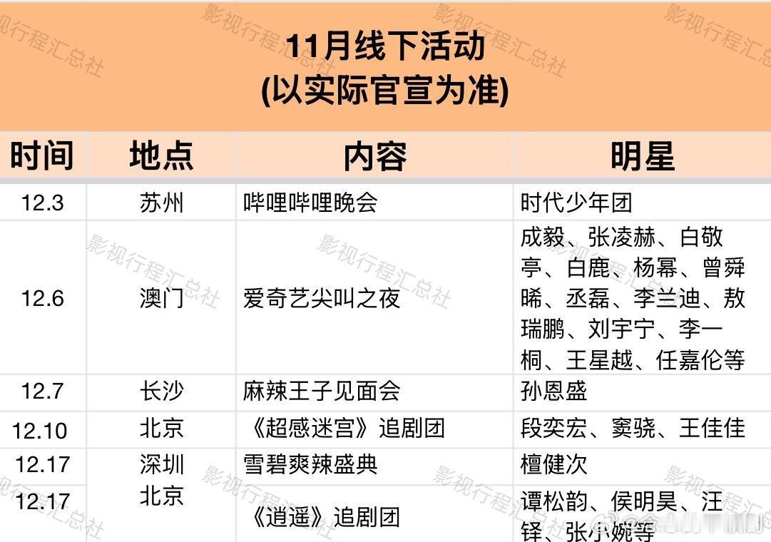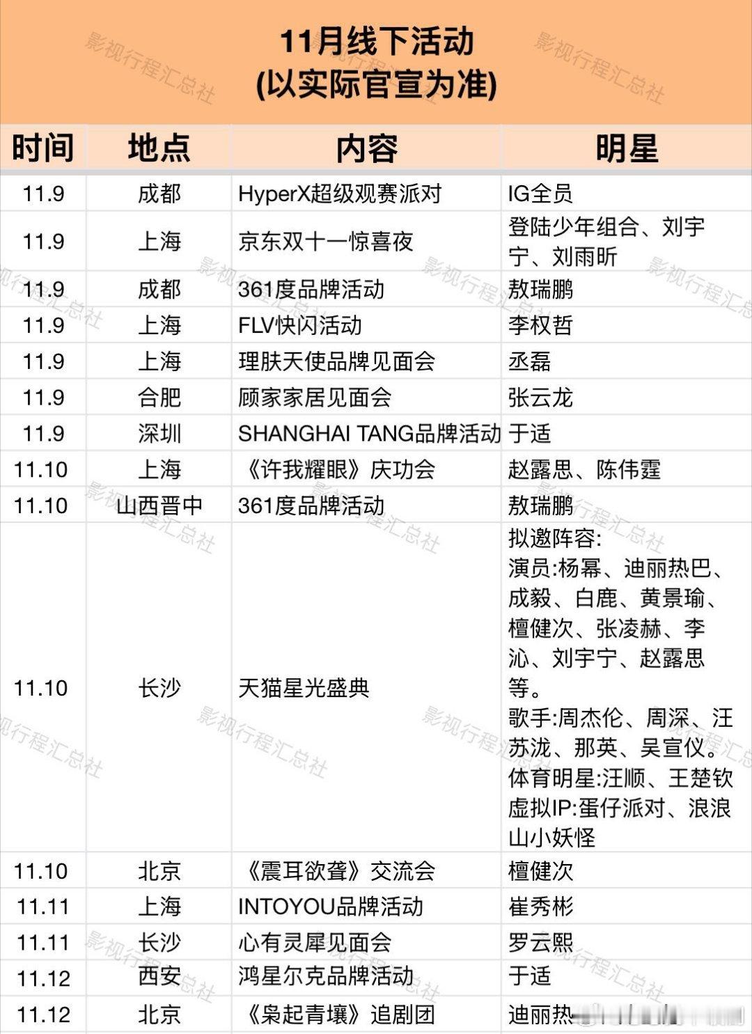 11月综艺录制汇总(以实际出席为准)影视行程汇总社 综艺现在就出发3、大侦探、声