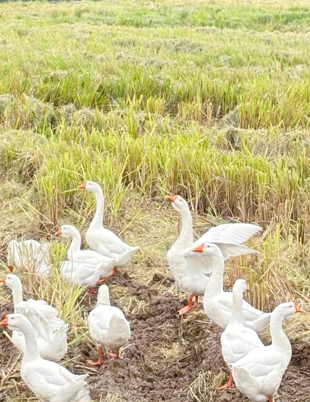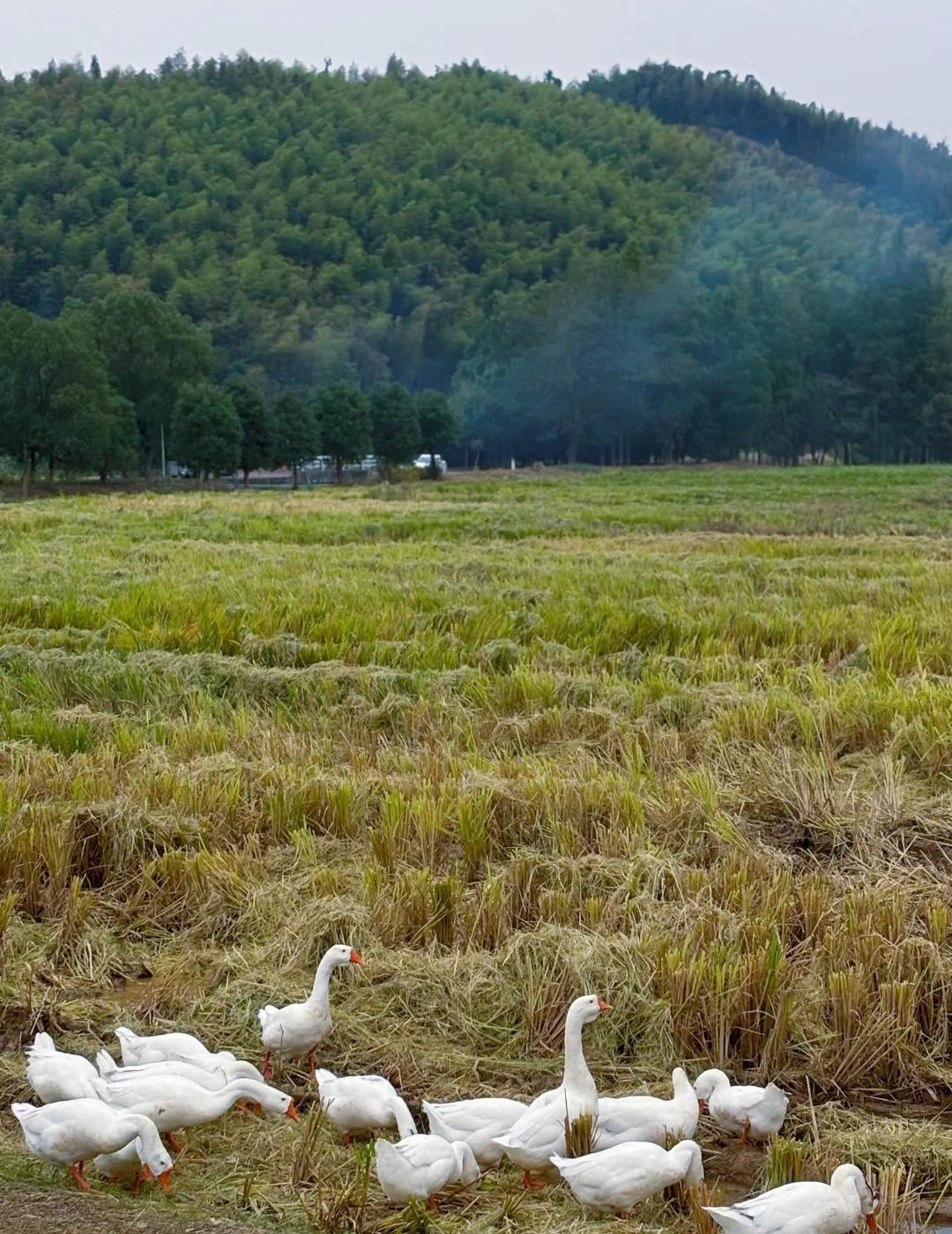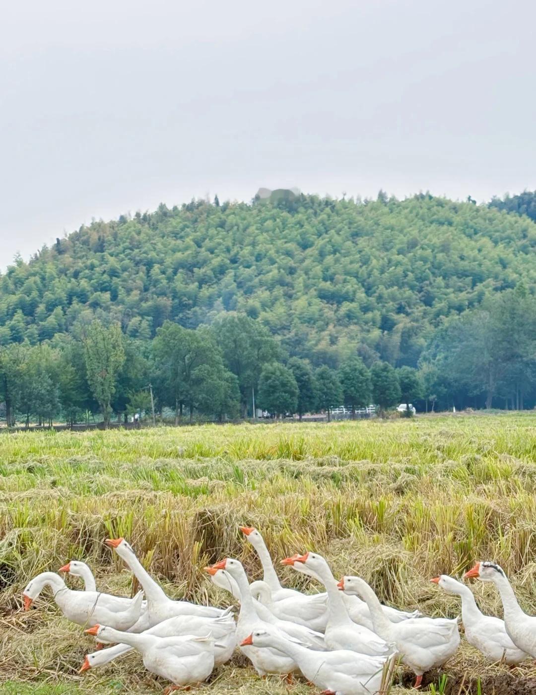 久在樊笼里,复得返自然。 心念一动,便驱车漫无目的地往前开。不赶时间,也无方向,只随着路,往人烟稀处去,往山影水光里去。 路过一个叫“奇鹤”的地方,名字沾着云野的仙气,叫人无端向往。于是方向盘一拐,滑入乡间小道,将车停在田边阡陌上。 田野刚刚秋收,稻子已割了,留下一地短短的稻茬,像大地新理的短发。天地一下子旷远起来,风慢悠悠地吹过,带着干草和泥土晒过太阳后的暖香。不远处,几座农舍散落在树荫里,静悄悄的。 我沿着田埂慢走,鞋底沾了湿泥,也不在意。就在这时,望见了那一群白鹅。 它们才是这儿真正的主人,自在得很。有的三三两两,在田埂上踱方步,雪白的羽毛在日光下晕着柔光,不慌不忙。有的挨挨挤挤,在残水与田垄的交界处,也不做什么,只是站着,仿佛在享受这午后无所事事的慵懒。偶尔一只曲项向天歌,那声音也是清亮亮、慢悠悠的,并不惊扰这片宁静,反倒像在为其配上注解。水洼里的几只,红掌拨着清波,一圈圈涟漪慢吞吞地荡开,它们的身子便在这温柔的节奏里,一摇一摆,从容得让人忘了时间。 我就那么站着,看了许久。心里那根紧绷的弦,不知不觉就松了下来。原来闲适,并非要去远方寻找,它就在这收割后的田野上,在这群白鹅的红掌之间,在这慢得仿佛停滞的时光里。和鹅一起放个风 乡村田园风光 大白鹅 人与自然和谐之美 放空 奇鹤