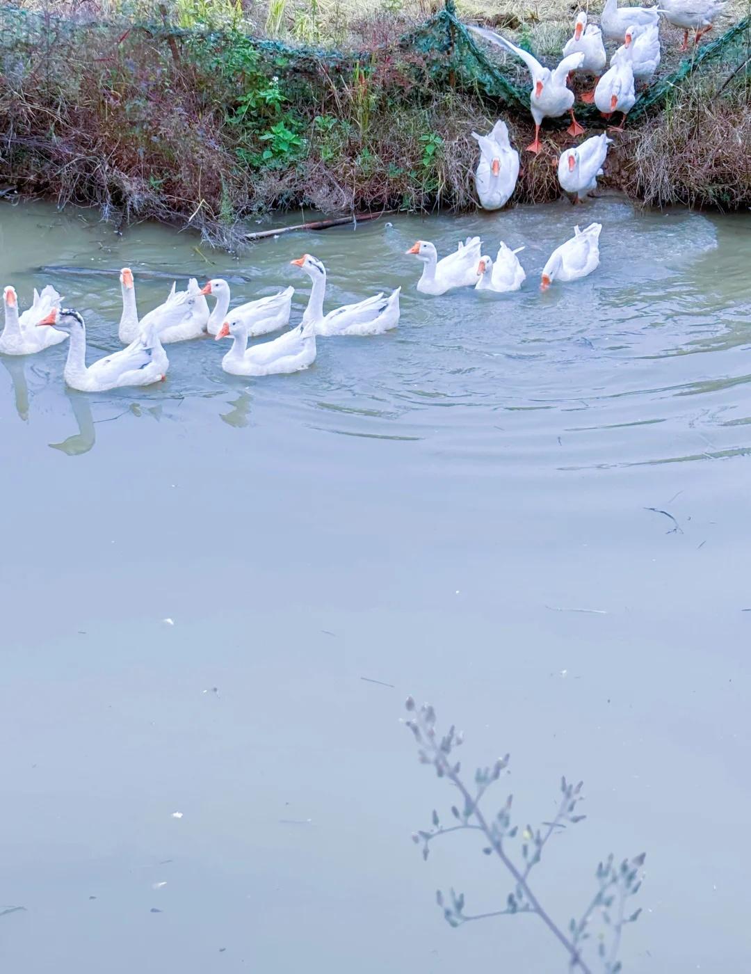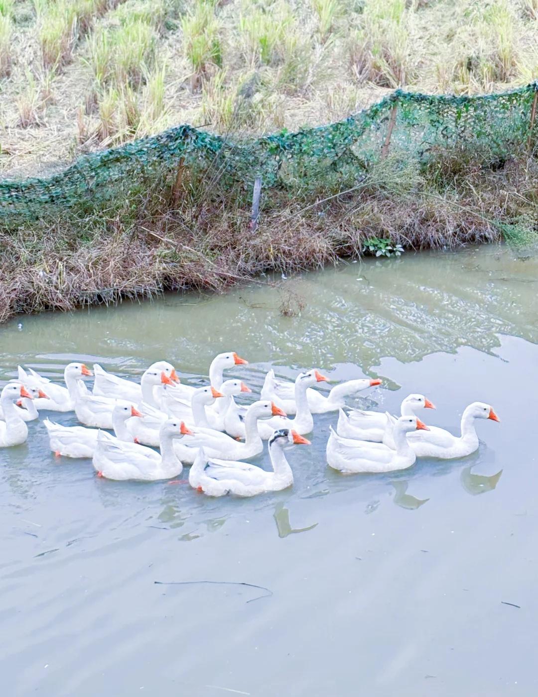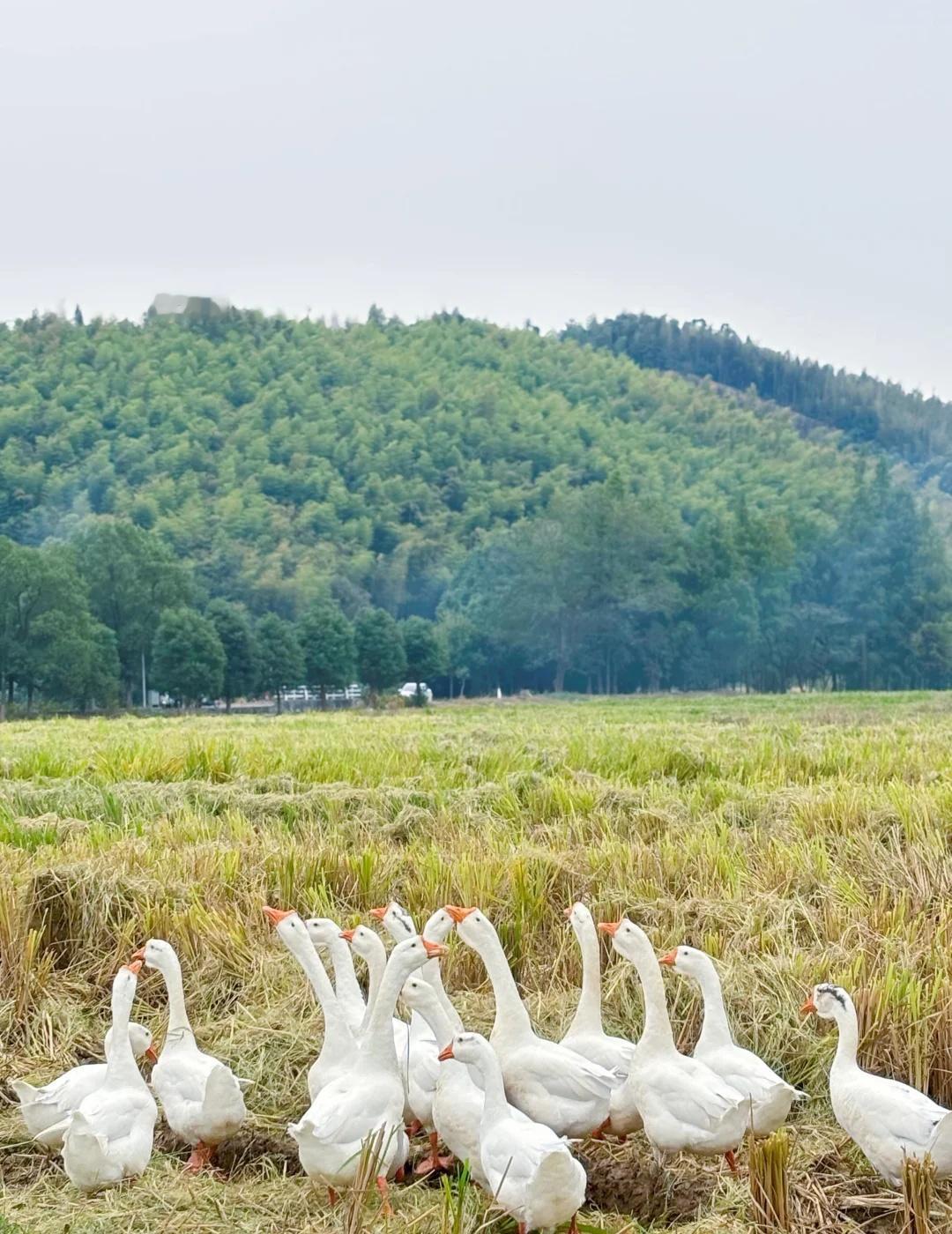 久在樊笼里,复得返自然。 心念一动,便驱车漫无目的地往前开。不赶时间,也无方向,只随着路,往人烟稀处去,往山影水光里去。 路过一个叫“奇鹤”的地方,名字沾着云野的仙气,叫人无端向往。于是方向盘一拐,滑入乡间小道,将车停在田边阡陌上。 田野刚刚秋收,稻子已割了,留下一地短短的稻茬,像大地新理的短发。天地一下子旷远起来,风慢悠悠地吹过,带着干草和泥土晒过太阳后的暖香。不远处,几座农舍散落在树荫里,静悄悄的。 我沿着田埂慢走,鞋底沾了湿泥,也不在意。就在这时,望见了那一群白鹅。 它们才是这儿真正的主人,自在得很。有的三三两两,在田埂上踱方步,雪白的羽毛在日光下晕着柔光,不慌不忙。有的挨挨挤挤,在残水与田垄的交界处,也不做什么,只是站着,仿佛在享受这午后无所事事的慵懒。偶尔一只曲项向天歌,那声音也是清亮亮、慢悠悠的,并不惊扰这片宁静,反倒像在为其配上注解。水洼里的几只,红掌拨着清波,一圈圈涟漪慢吞吞地荡开,它们的身子便在这温柔的节奏里,一摇一摆,从容得让人忘了时间。 我就那么站着,看了许久。心里那根紧绷的弦,不知不觉就松了下来。原来闲适,并非要去远方寻找,它就在这收割后的田野上,在这群白鹅的红掌之间,在这慢得仿佛停滞的时光里。和鹅一起放个风 乡村田园风光 大白鹅 人与自然和谐之美 放空 奇鹤