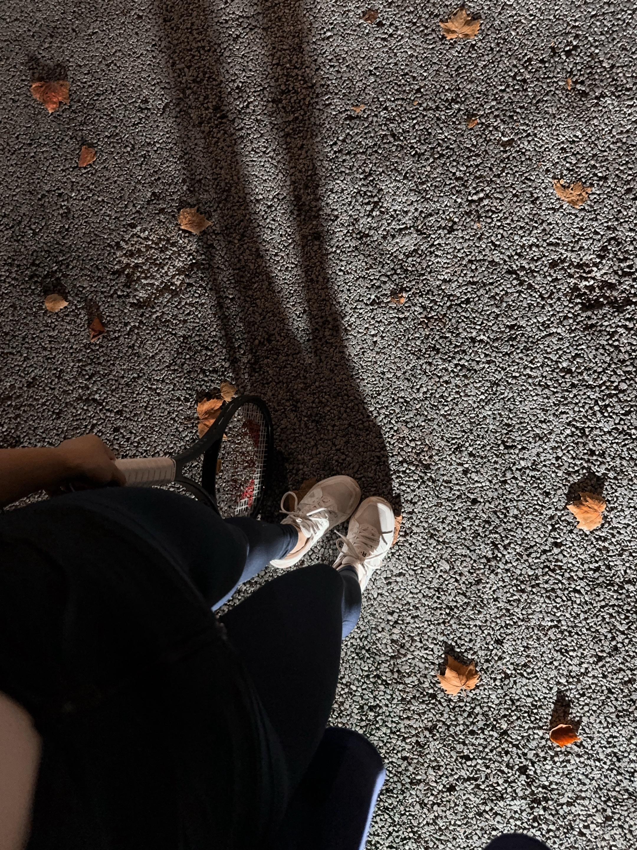 运动后放松时刻,穿红色卫衣,享受宁静时光。