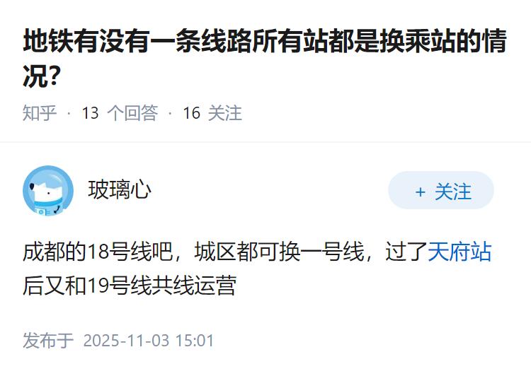 地铁有没有一条线路所有站都是换乘站的情况?