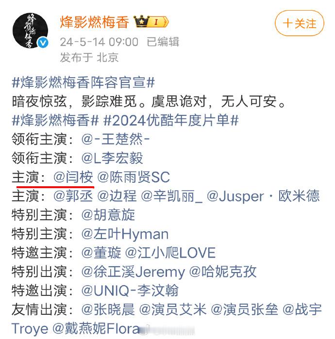 闫桉这个上位速度也太快了吧,第一部男主剧就搭上了爆剧班底,雁回时导演+延禧攻略编剧,女主还是田曦薇…闫桉就播了一部大梦归离7番,待播剧烽影燃梅香是王楚然的男二