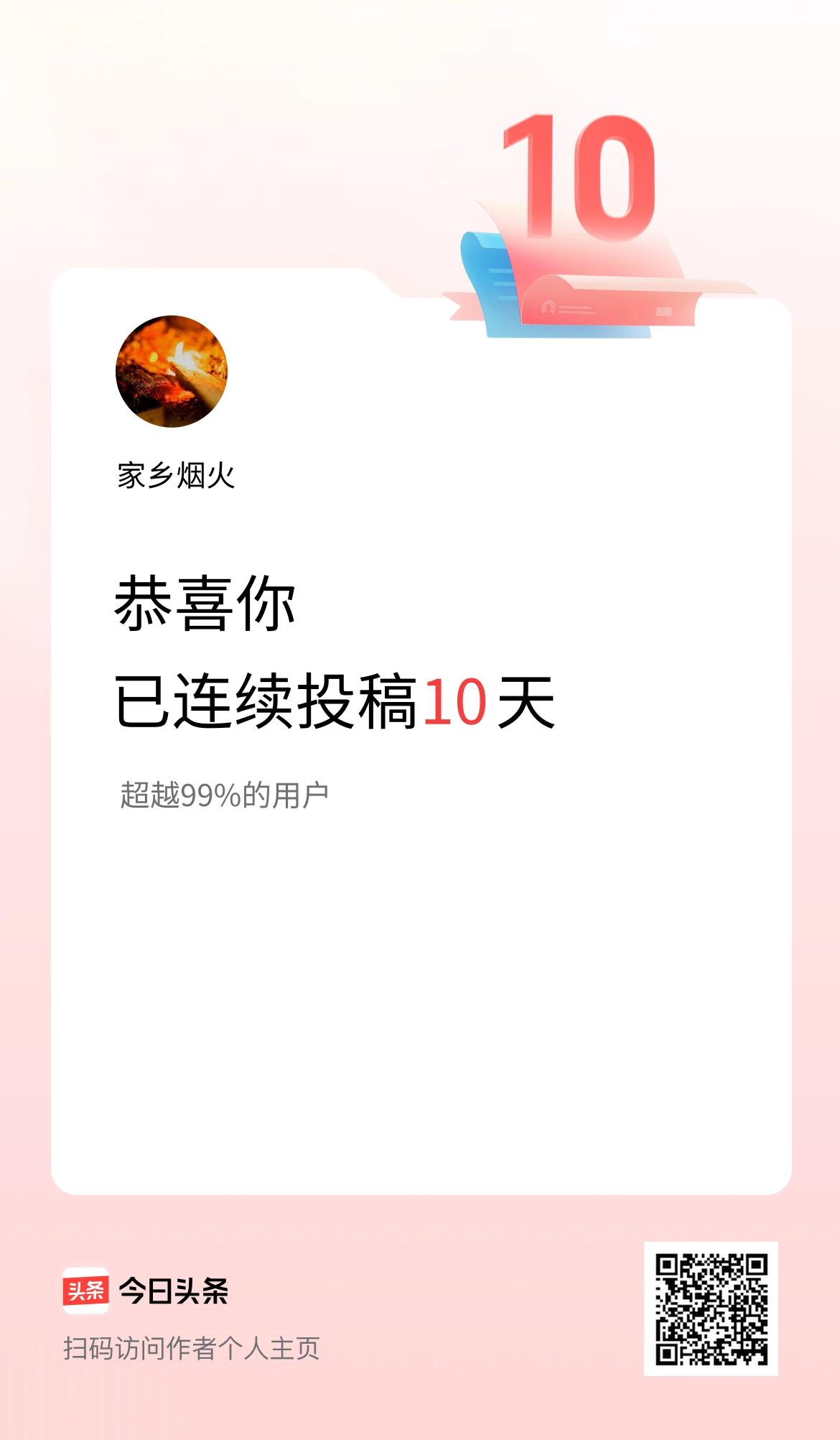 我在头条30天内投稿打卡10天,获得“妙笔生花”称号