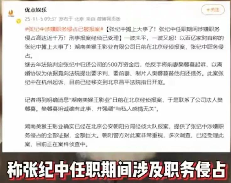 惊爆!74岁张纪中深陷816万职务侵占风波!昔日武侠名导,如今与小31岁娇妻的“恩爱商业局”遭重创。 湖南美猴王影业报案,直指其任职期间资金违规操作,多项转账被指与工作无关。前妻樊馨蔓坚称指控属实,张纪中则怒斥诬告,称是离婚后纠缠。 双方多年纠纷不断,本质是婚姻破裂后商业利益拉锯。目前北京经侦已介入,这场涉及巨额资金、恩怨纠葛的大戏,究竟真相如何,且看司法机关如何定夺! 张纪中 张纪中破产