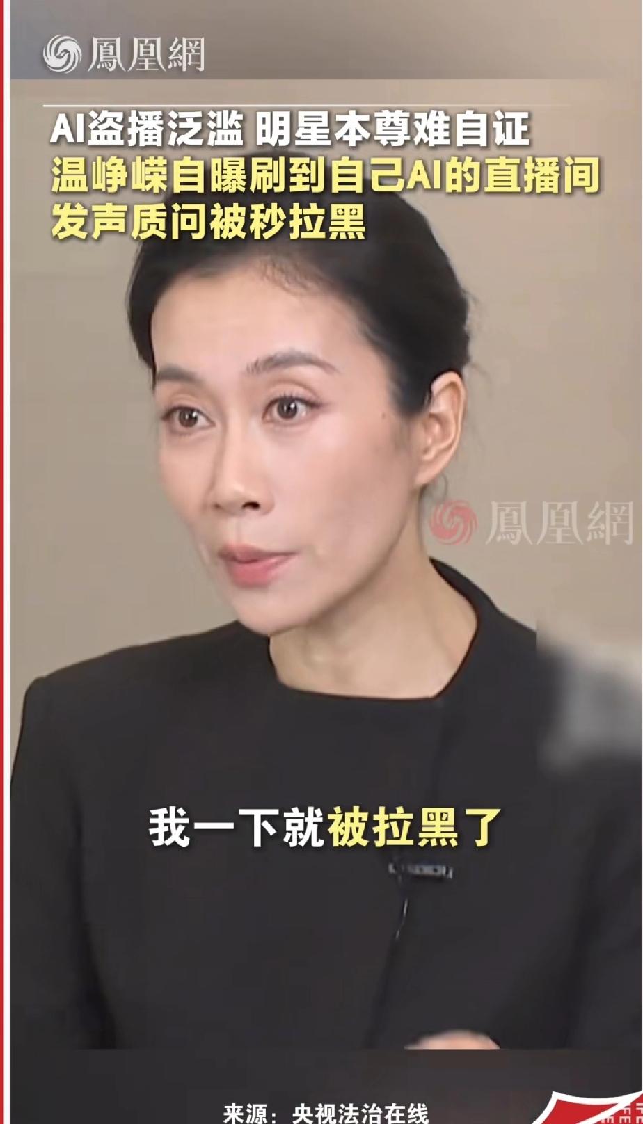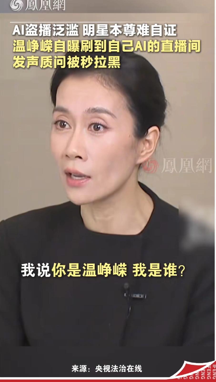 AI盗版泛滥 明星本尊难自证,温峥嵘自爆刷到自己AI的直播间发声质问对方:你是温峥嵘那我是谁? 结果直接被秒拉黑。早在4月之前,就有多个“温峥嵘”同时出现在不同直播间,同一时段妆发不同,推销着不同产品,说着同样的话。 确实经常刷到温峥嵘直播卖货,脸上摸得溜光水滑的。当时心想她怎么成这样了?为了卖个红蛮腰把妈妈都别进来了,好没下限! 现在才知道原来是别人Al她,这些直播间真要好好管理了,这么光明正大的盗用人家的头像。 温峥嵘团队年前就发了律师函,可这些产品他们根本没推荐过。 粉丝信任明星下单,却被AI手段混淆视听。近两年,AI深度合成名人视频屡禁不止,治理核心得落实内容标识制度,严格区分合法与非法应用,不然真不知道还有多少人会被坑。 现在的Al技术太成熟了,根本分不清真假,买个东西都很容易买到仿冒品。