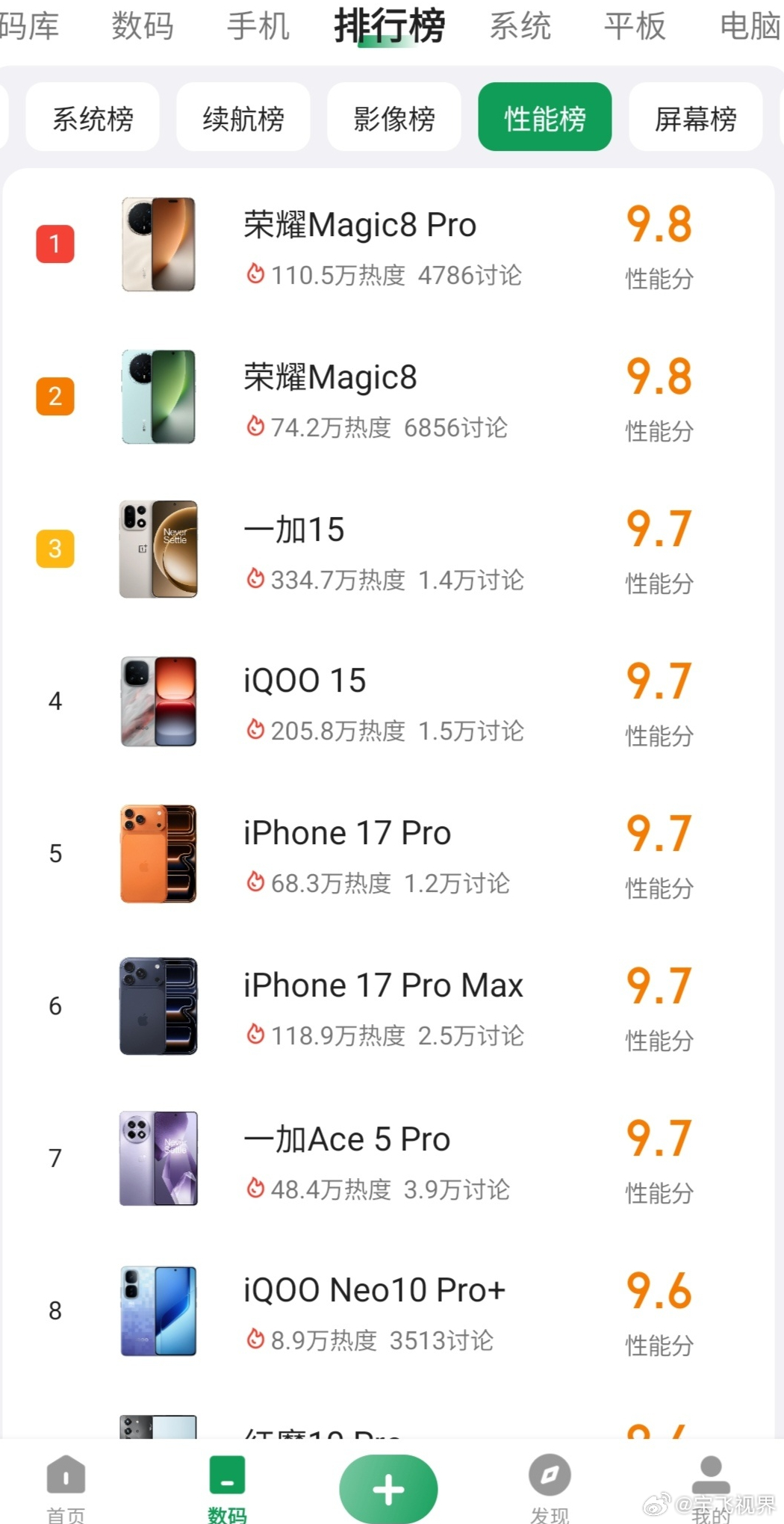 荣耀酷安10月份的性能排行榜新鲜出炉,荣耀Magic8Pro和标准版,直接包揽