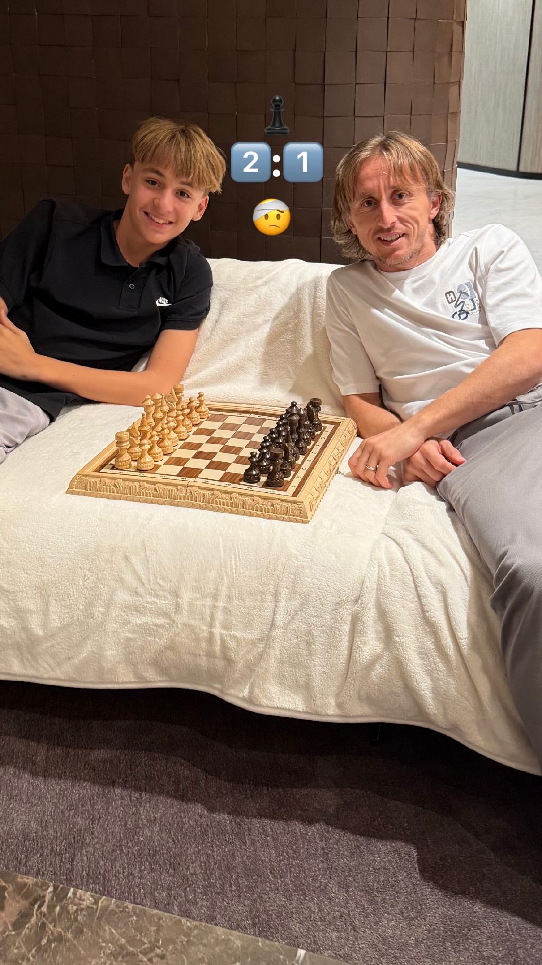 莫德里奇和儿子下棋被打败。😂🤍
