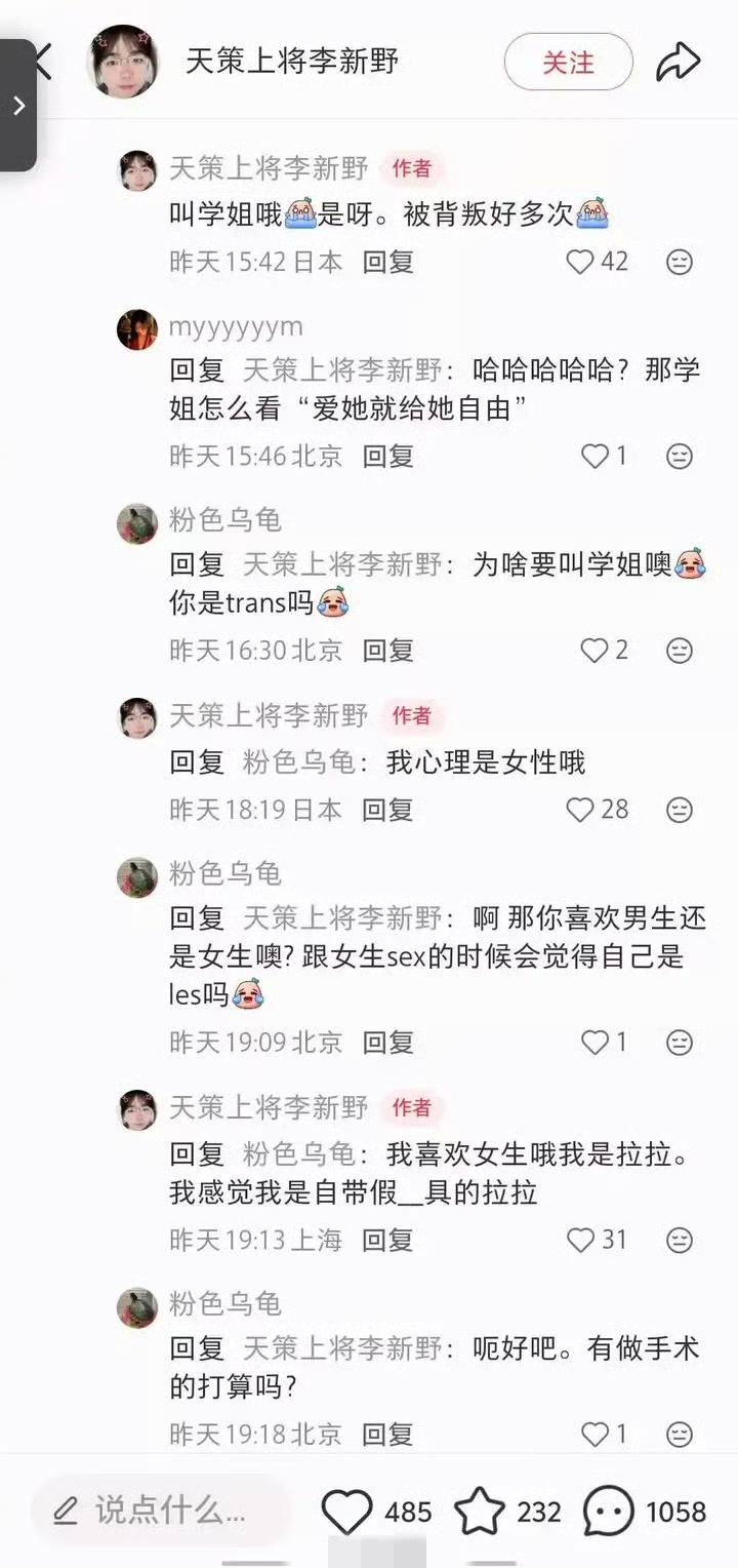 一个奇怪现象,李新野弑父之后又怒写《人妻约会指南》PDF,让文坛一时竟无英雄。搞笑的来了,他去小红书开了个号,照理他在文中对女性的绝望、嘶吼,用了繁多的母猴、鸡等词汇,他应该会被抨击到无所适从,黯然退出平台吧?结果局面是相反的,小红书的姐妹们对他的态度反而非常友好,比微博、知乎对他夸奖中夹杂着批判好多了,这到底是为什么?陈肆野 方野策划 别野大观