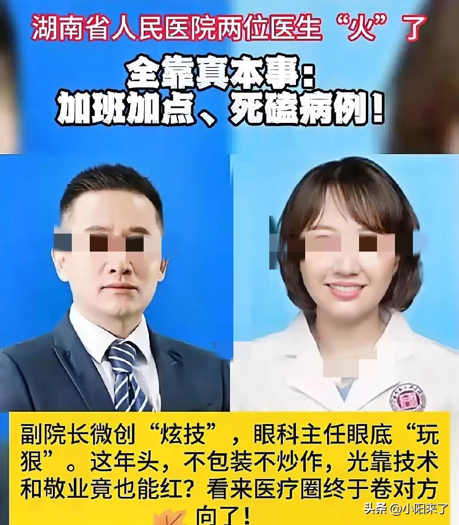 湖南人民医院的副院长可能没想到, 自己会以这样的方式, 被网友扒了个底朝天 两位医学界的“顶流骨干”——留美博士副院长、眼科博导,前阵子还凭着精湛医术被众人称道,转头就因私德问题冲上热搜,直接把院长逼到了两难绝境! 开除?医院手术排期、核心业务全得乱套;轻罚?舆论炸开锅不依不饶,医院口碑直接翻车! 但必须掰扯清楚:医术再高,也不是私德摆烂的“遮羞布”!医生的天职是治病救人,可“医德”才是立身之本,没了人品兜底,再厉害的医术也难让人信服! 真查实问题,警告通报、降职整改必须到位,既给公众一个交代,也给行业立好规矩;若纯属造谣,就得立刻还医生清白,别寒了实干者的心! 别再拿“能治病就行”自欺欺人了,无德的医生,医术再好也难成良医! 我觉得完全不用理会这个,只要能治病就行!院长不要糊涂,把人才放走了啊!