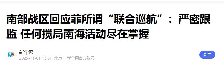 这是一条大快人心的消息:几天前,美、澳、新、菲四国军舰扎堆跑到黄岩岛附近搞所谓的 “联合军演”,结果刚摆开架势就被中国海军来了个 “贴身紧逼”,直接把四国舰队的阵型搅了个七零八落。 四国此次总共凑了四艘舰艇,美国派来“菲茨杰拉德”号驱逐舰撑场面,澳大利亚出了艘安扎克级护卫舰,新西兰干脆只派来“奥特亚罗瓦”号补给舰凑数,东道主菲律宾的“何塞·黎刹号”护卫舰吨位刚过2500吨,论实力连中方随行的052D型驱逐舰零头都比不上。 他们打着“提升区域安全”的旗号,搞的不过是通信验证、战术机动这类基础科目,连反潜模拟都得靠P-8A巡逻机远程配合,与其说是军演,不如说是场多国海军见面会,更有意思的是新西兰的补给舰全程主要任务是给美舰加油,这种“后勤支援式参演”,实在看不出能对地区安全有什么贡献。 四国刚在海上排开阵型,中国海军的舰艇就已抵达现场,五艘舰艇形成的监控网直接压过四国兵力,052D型湛江舰排水量7000多吨,带着相控阵雷达和垂直发射系统,往旁边一靠,菲律宾那艘小护卫舰顿时显得底气不足。 还有艘815A型情报收集船更不含糊,顶着满船天线紧贴美澳舰艇,把他们的雷达信号、通信频率全收了去,连美国海军自己发的照片里都能看到它的影子,这贴身围观的架势,比直接驱离更让对方难受。 可以说,咱们中方的应对是早有章法,自2024年11月宣布黄岩岛领海基线后,南部战区就持续加强海空战备警巡,歼-16战机挂实弹巡航、轰-6J挂载反舰导弹威慑,形成了常态化管控体系。 这次对付四国军演,不过是把日常部署转化为针对性行动——5.6到9公里的监视距离拿捏得恰到好处,既在国际法框架内,又能把对方动向看得一清二楚,这种专业克制却步步紧逼的操作,正是多年维权练就的本事,南部战区11月1日直接点明,菲方拉外部势力搅局就是制造麻烦,这话算是把窗户纸捅破了。 何况,四国这场戏的动机本就不纯,菲律宾今年已经搞了十二次这类多边活动,说白了就是想倚外闹海,靠抱大腿给自己壮胆,美国借演习推进印太战略,澳大利亚、新西兰跟着“五眼联盟”的节奏凑数,四方各怀鬼胎,根本谈不上什么战略协同。 可他们忘了,黄岩岛是中国固有领土,这在一系列国际条约里写得明明白白,菲方自己的领土范围从来就不包括这里,中方不仅有法理依据,更有实力支撑,海警5901船常年巡航,海军舰艇随时响应,这种军事+执法的联动,早就织好了管控网络。 说到底,这场闹剧再次证明,外部势力想靠军演在南海刷存在感纯属徒劳,四国凑了四艘船,中方来了五艘,吨位、火力、技术都占优,所谓的联合威慑在绝对实力差距面前不堪一击。 今后再有人想组团跑到黄岩岛附近摆架子,最好先掂量掂量,中国海军的监控网只会越来越密,常态化警巡的力度不会减,靠几艘船凑数的军演撑不起威慑的场面,反而会沦为笑柄,南海的和平从来不是靠外部势力“军演秀”维护的,那些总想搞小动作的国家,早该收起算计,回到对话协商的正道上来。