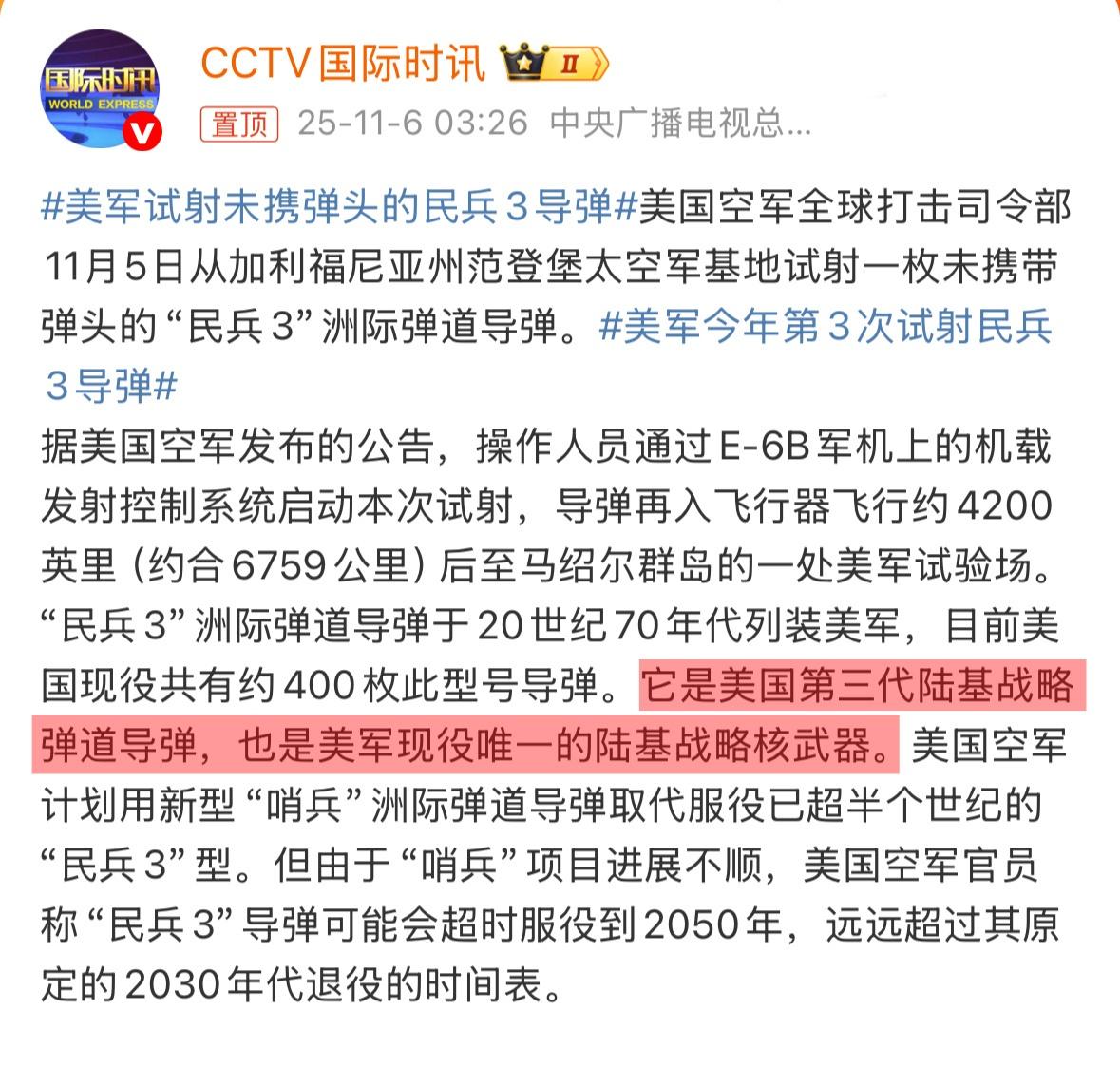 美国在核战略上又短视又自私,这表现在它对国际核不扩散体系的破坏上。热点观点 我看到,美国一边要求别的国家得遵守核不扩散的规则,可自己呢,却不停地研发新核武器,还对现有的核武器进行升级。烽火问鼎计划 认为,美国这种自己一套标准要求别人、另一套标准对待自己的做法,把国际核不扩散体系的权威性和有效性狠狠地给损害了。 相关事件 @CCTV国际时讯 微博正文