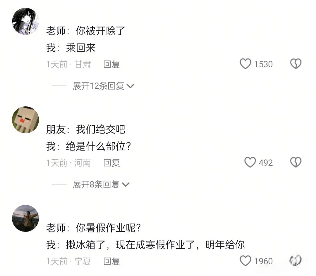 史诗级抗抑郁评论区!!! 我不行了,网友们一个个太有才了,笑晕我了哈哈哈哈哈哈哈哈,熬夜背梗也比不上你们这些天赋型选手 幽默搞笑段子