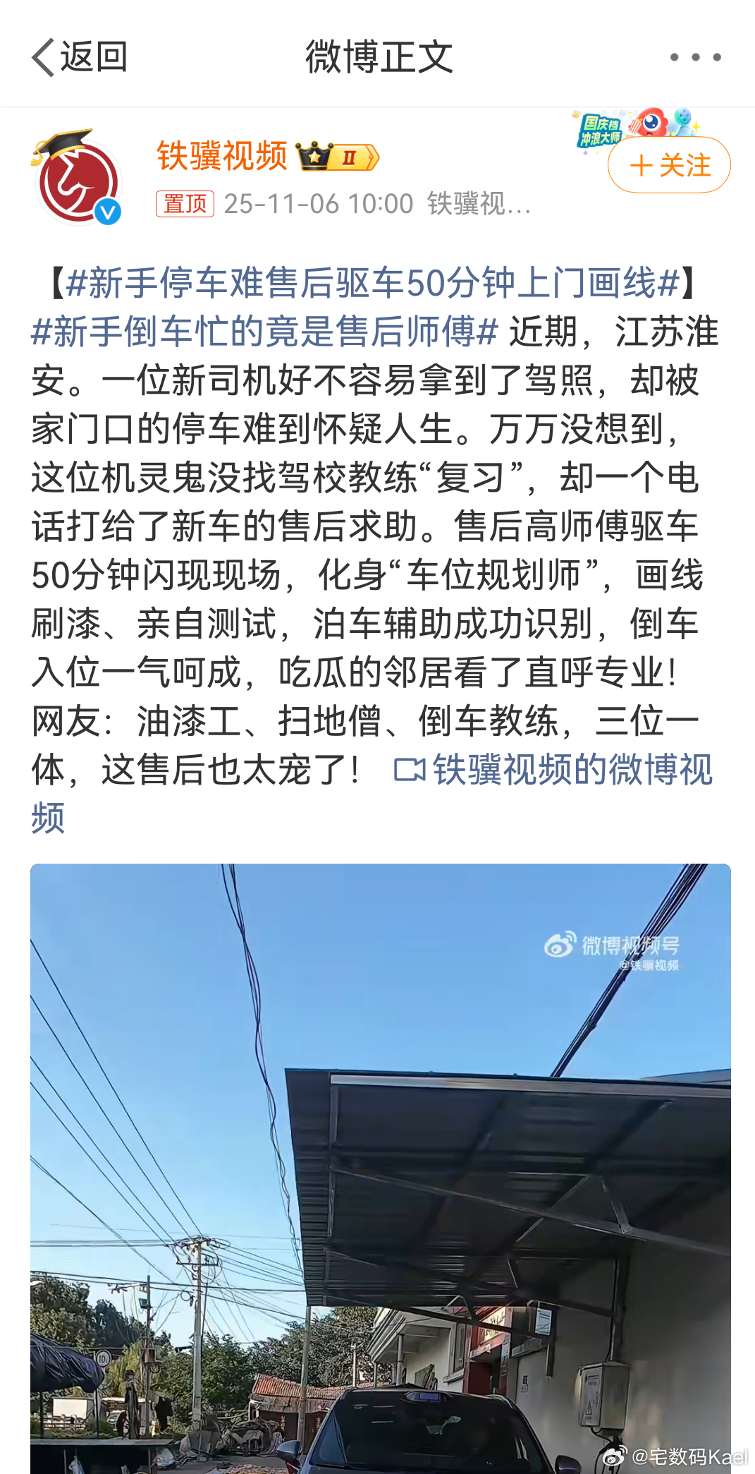 新手停车难售后驱车50分钟上门画线 我记得,当年刚学会开车的时候,停车每次都要死要活。要是有这服务,那还说啥了!
