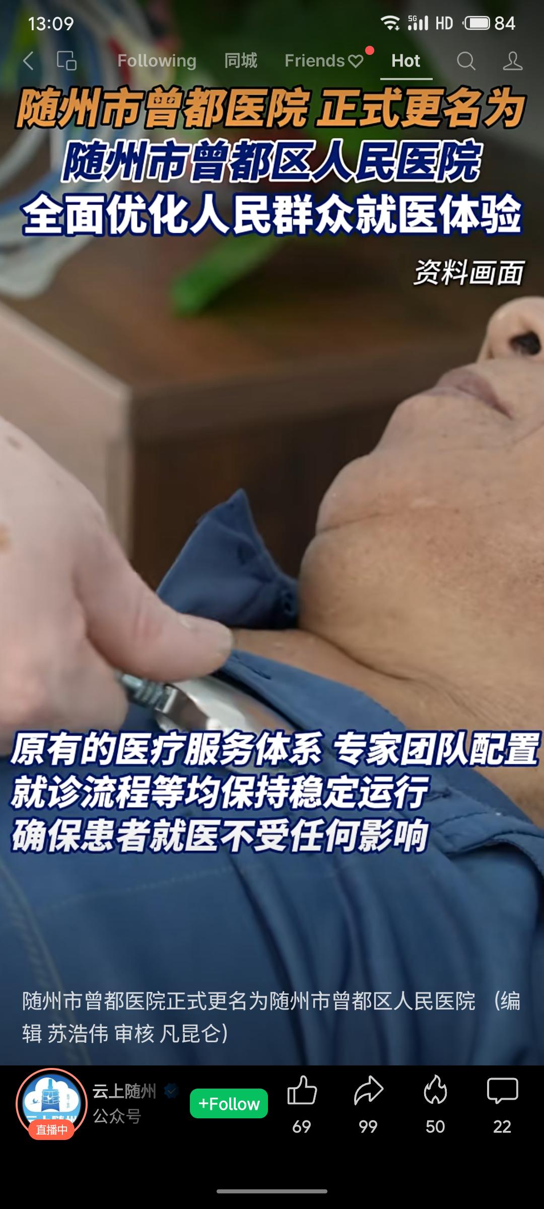 随州市曾都医院已于2023年11月6日正式更名为随州市曾都区人民医院,并承诺全面优化群众就医体验,同时确保原有医疗服务及团队配置稳定运行。