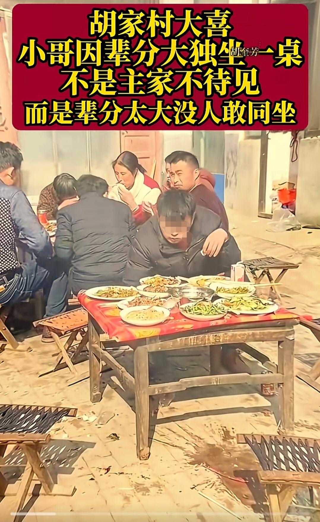 辈份长的,主家独自为其开一桌酒宴,第一次听说! 看图上,这位所谓的辈份太大的长者,年纪也不大呀,为啥人们不敢同他坐呢?让他独自一人自吃自饮,这好像显得不礼貌吧! 我们这里,只有辈份长的被请坐首席。其他人陪坐,敬酒吃菜,先请首席先来。 礼节该有,但也不能拘泥,做过了,就显得无礼了! 友友们,赞同吗?你问我答 个人观点,仅供参考!