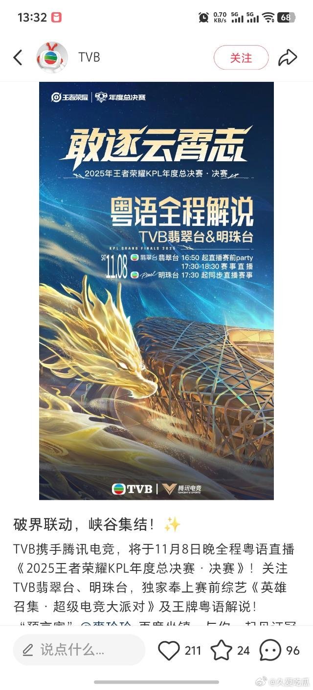 瓜友速报TVB的翡翠台,明珠台也会直播这次的年总决赛,粤语全程解说