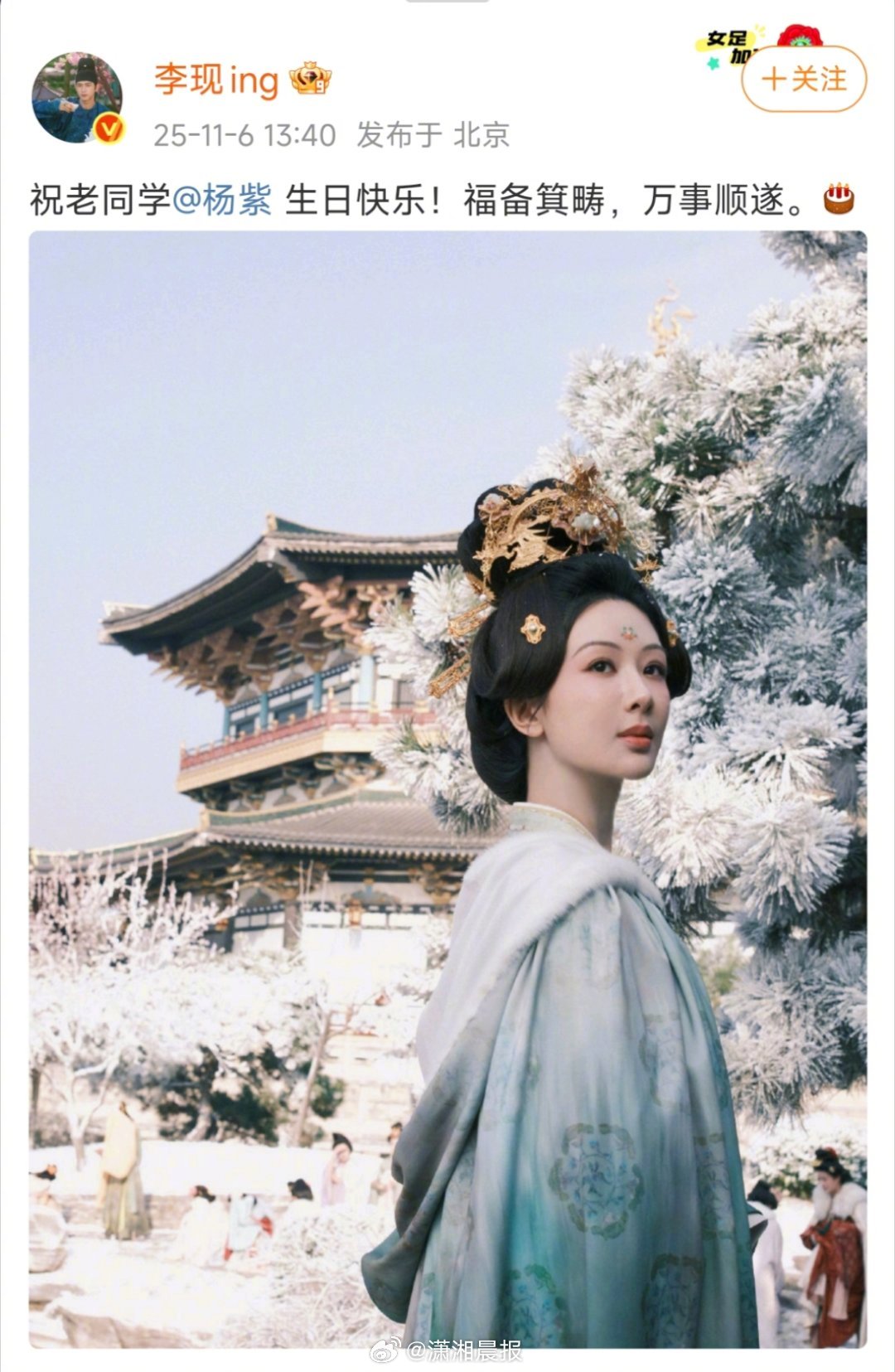 【#李现已连续八年为杨紫庆生#】11月6日,第八年为庆生,晒杨紫何惟芳海报庆生“祝 生日快乐!福备箕畴,万事顺遂。[蛋糕] ”