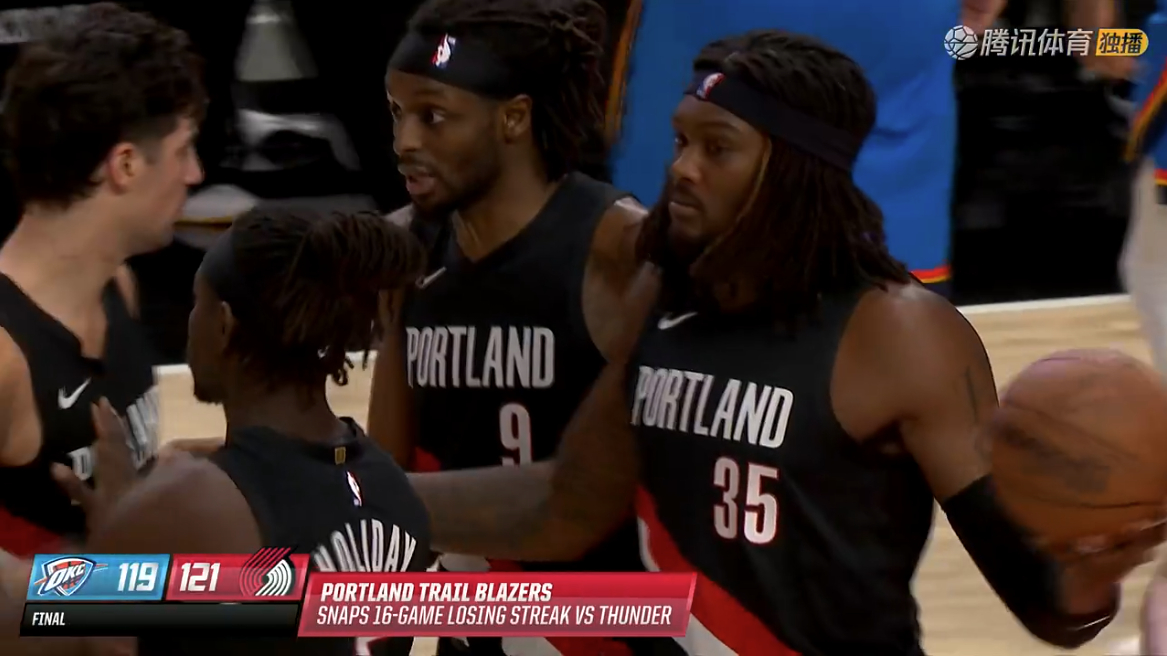 哈哈哈哈恭喜开拓者,终结了卫冕冠军雷霆的8连胜!!!!开拓者终结雷霆八连胜