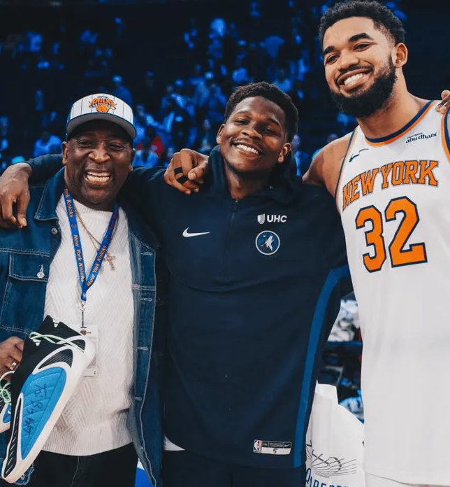 NBA常规赛,森林狼对阵尼克斯的全场比赛已结束,森林狼114-137负于尼克斯。 赛后,森林狼官方晒出一张爱德华兹与唐斯及其父亲的合照。 本场比赛,唐斯全场出战31分钟,11投5中,三分5中1、罚球4中4得到15分10篮板4助攻2盖帽。 爱德华兹全场出战28分钟,13投5中,三分7中3得到15分2篮板5助攻2抢断、正负值-25。