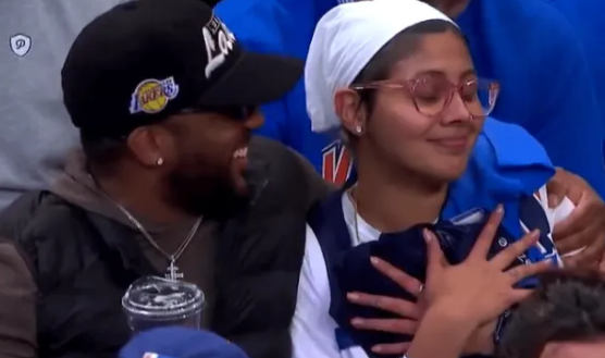 NBA常规赛森林狼客场对阵尼克斯的比赛已经结束。全场战罢,森林狼以114-137不敌尼克斯。 比赛进行到末节,爱德华兹将球衣送给身后身穿自己球衣的女球迷,球迷抱着球衣,洋溢着幸福的表情。 本场比赛,爱德华兹13中5,得到15分5助攻。