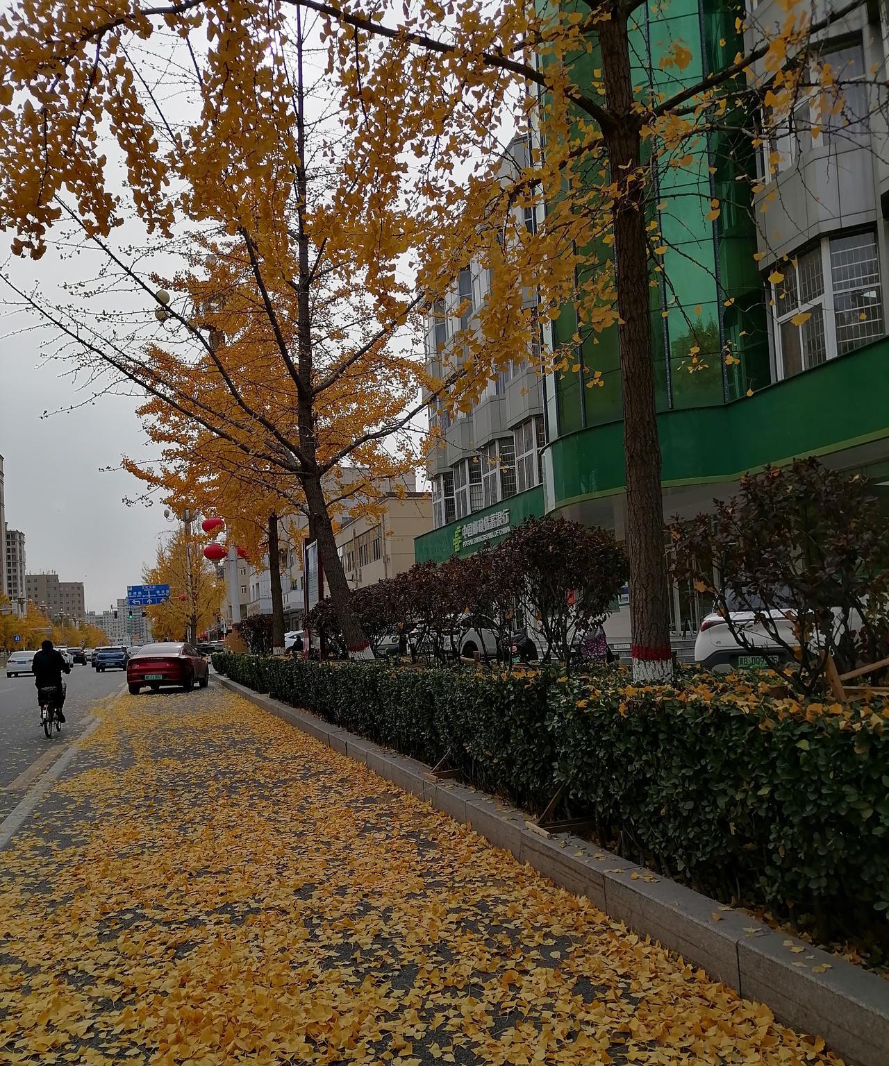 下班的路,正好是一条银杏大道。今天的天气是稍微有点风的。风一吹,叶随风落,飘飘洒洒铺满地面,一片金黄。 金灿灿的银杏叶一片挨着一片,大家摩肩接踵的聚在一起,不管是在树上,还是铺满大地,被午间的暖阳这么一照,霎时闪现的迷人金光,实在太美了。所以,一个没忍住,停下车子随手拍起来,好留着慢慢欣赏。 上午看天气预报,明天可能会有雨。那今天应该算是最佳观赏日了。因为秋风扫落叶,若再有雨的加持,此等银杏美景恐怕就转瞬即逝了。 因此,虽然明知中午休息时间很短,但是面对着这么好看的易逝美景,岂能忍心错过?!所以,毅然决然地一次又一次地停下来,拍了又拍,又拍……