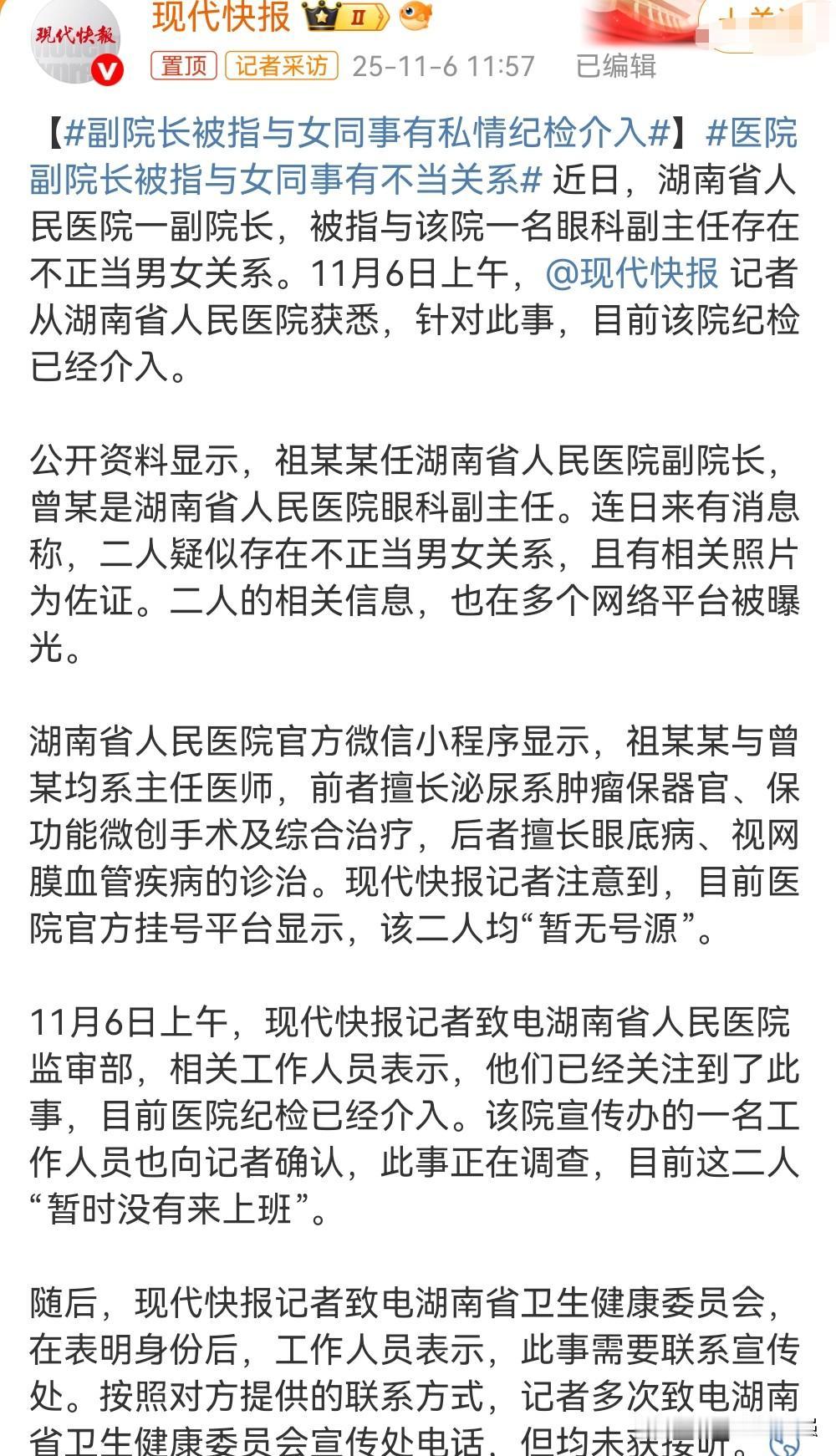 一定要好好查查,近日,副院长被指与女同事有私情纪检介入,而且网上有照片流传。 如果他们有家庭的话,那做出这种事情太不应该了,而且这里面如果涉及到利益输送,那就问题大了。 一定要查个清清楚楚明明白白。 纪检已经介入了。