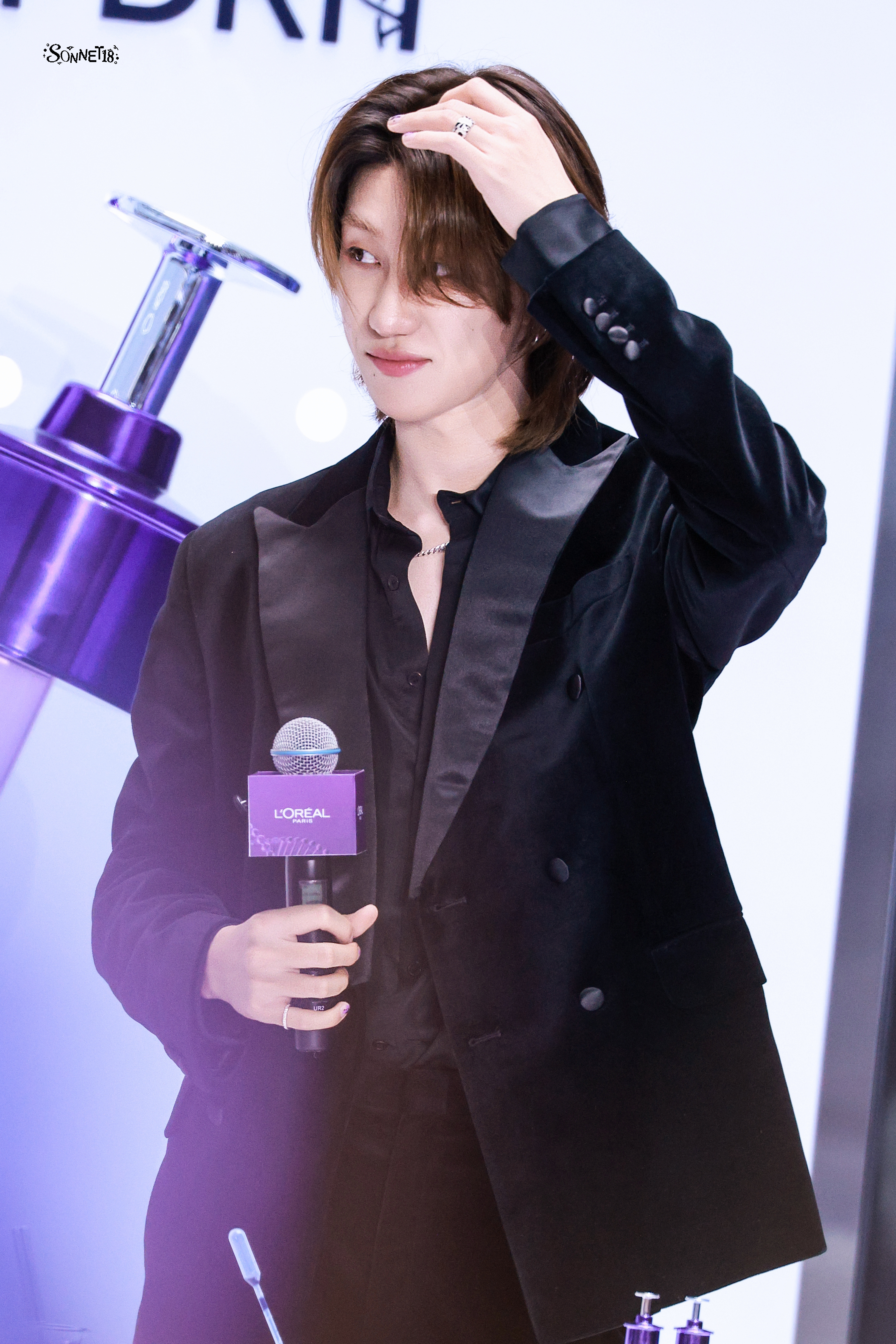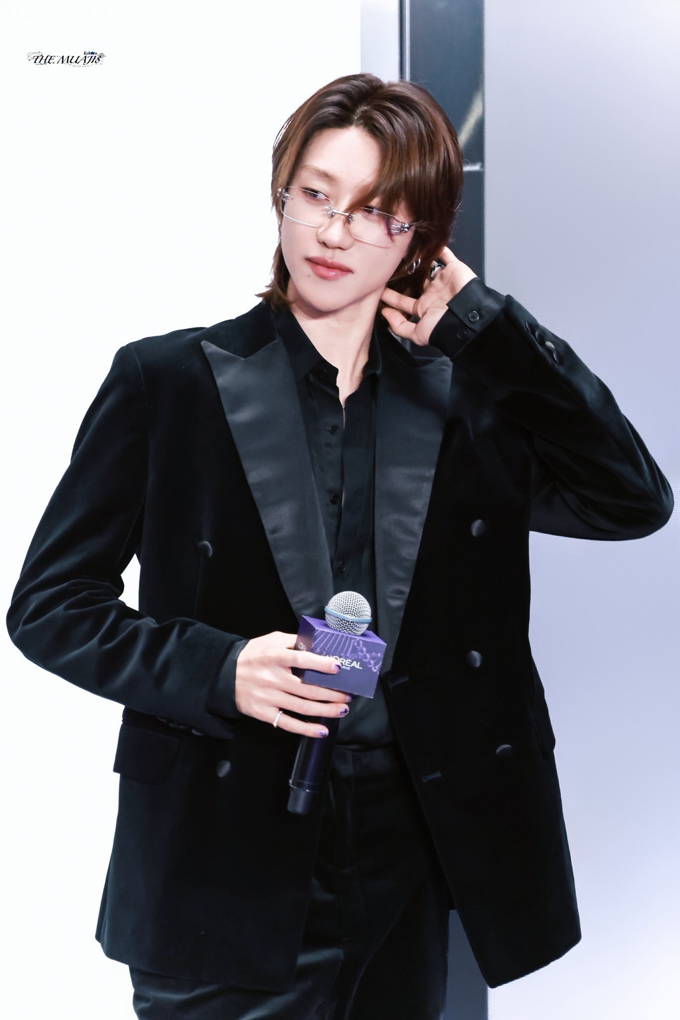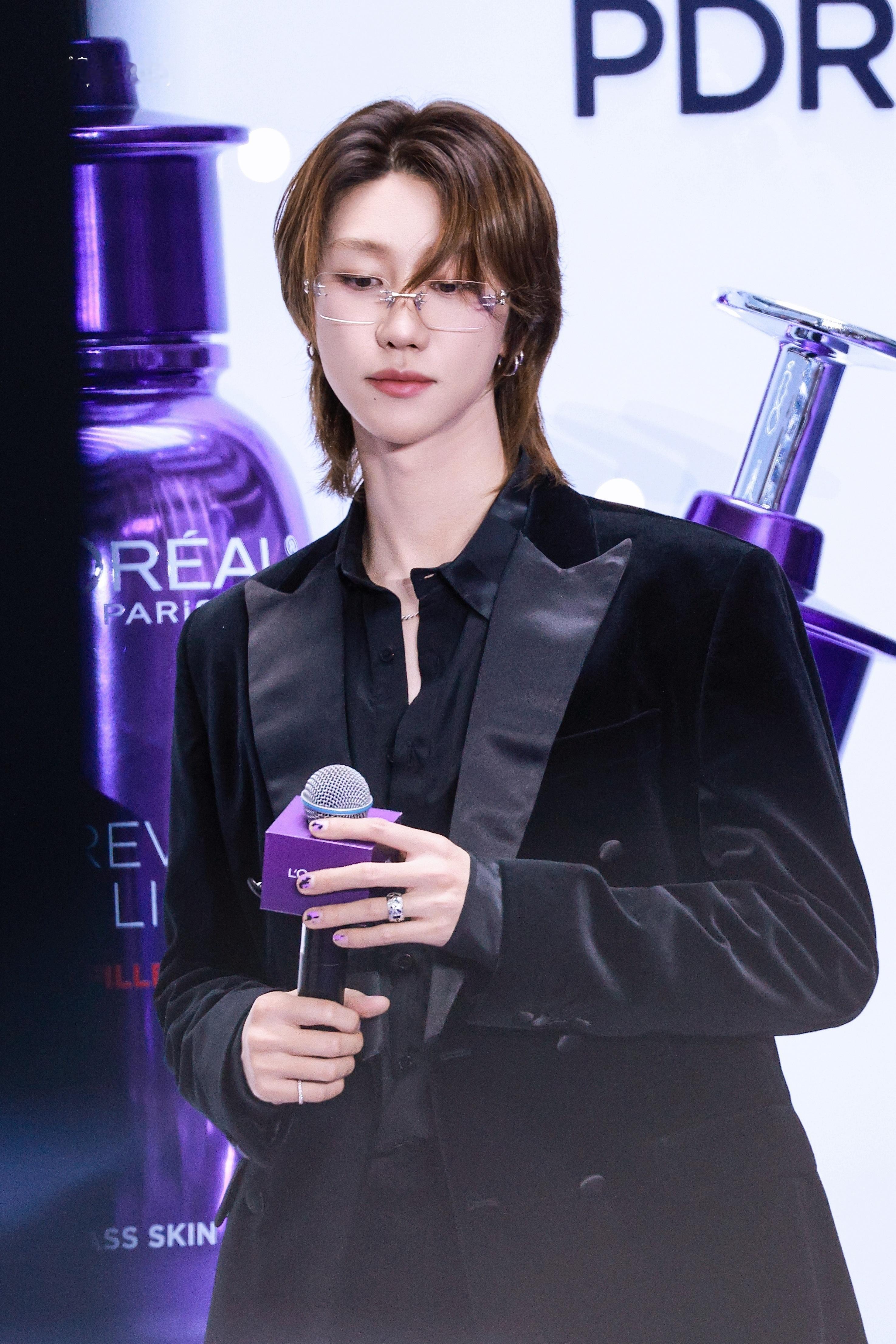 今日出席欧莱雅广州线下活动,一袭纯黑绒面西装搭配无框眼镜,呼应产品设计的紫色美甲很有巧思,优雅帅气的品牌大使登场📸💜💐